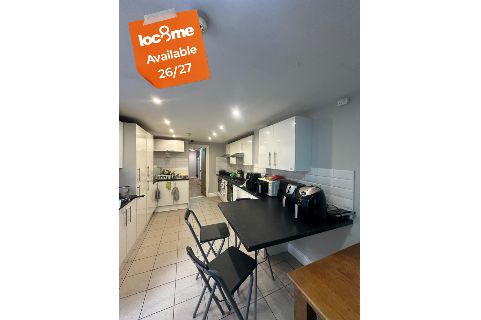 Modern Fitted Kitchen / Utility Space - Equipped with multiple appliances including 2x fridge freezers, oven/hob, washing machine, and ample storage – ideal for group living.