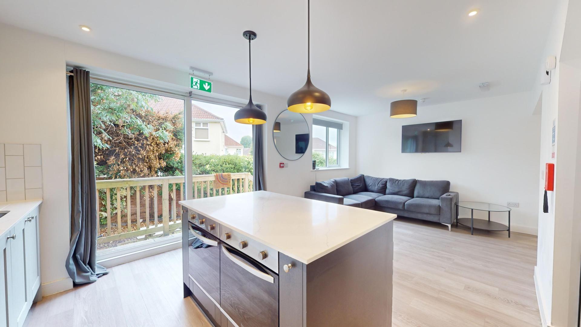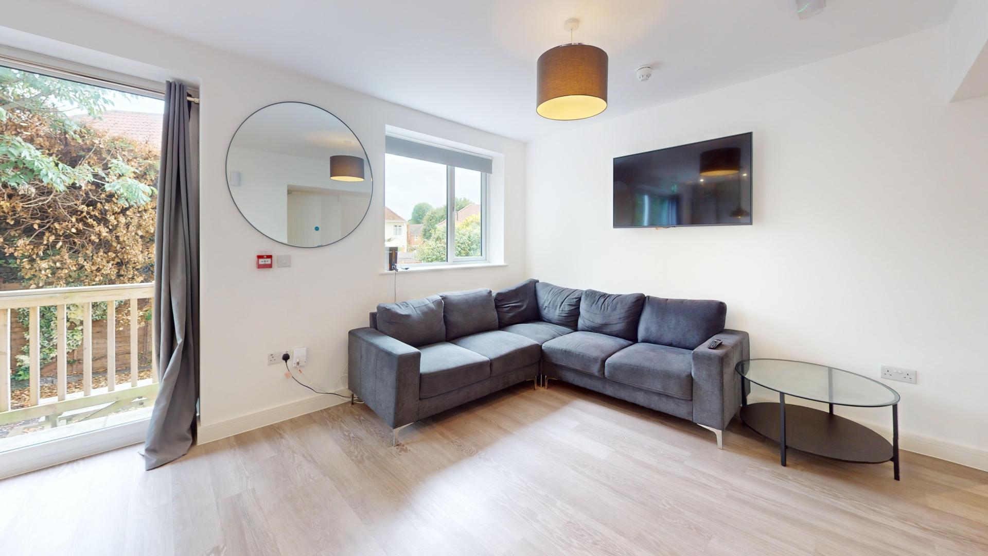 Modern Open-Plan Living Area – A bright and inviting communal space complete with comfy sofas and a dining area – perfect for socialising, movie nights, or unwinding after a day at uni.