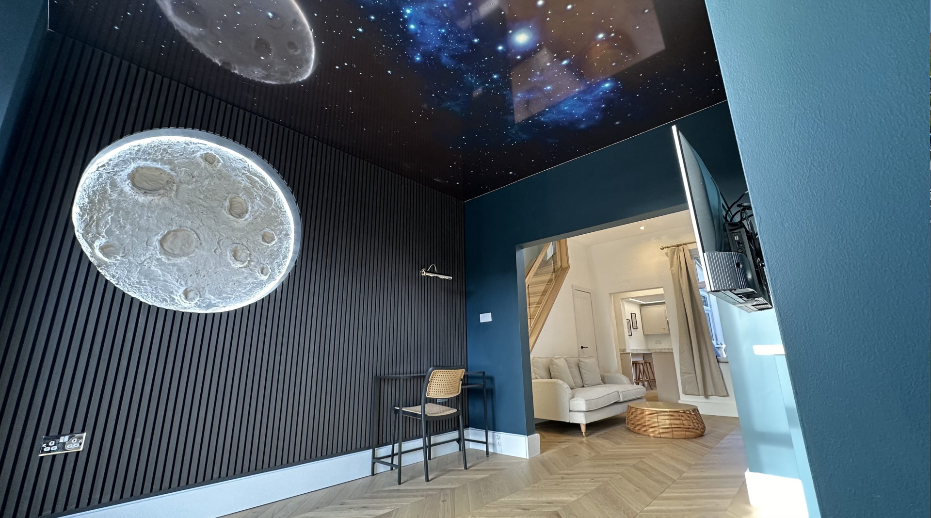 3 Spacious Bedrooms – fully furnished, modern décor, and plenty of storage a unique space with an incredible galaxy ceiling and cosy seating, Tv's included too.