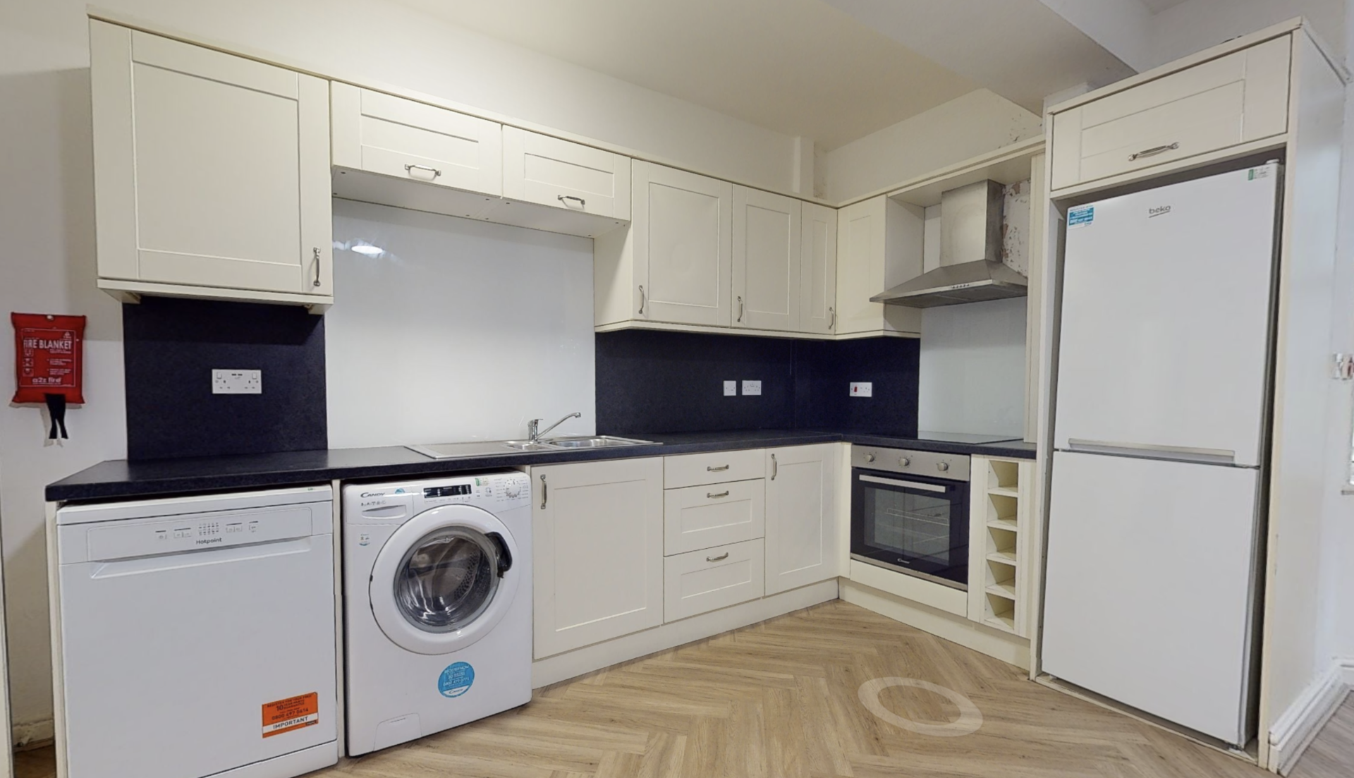 The property features a large kitchen and living area, serving as the central hub for communal activities and socialising. Whether you're cooking up a feast or relaxing with friends, this space provides both functionality and comfort.