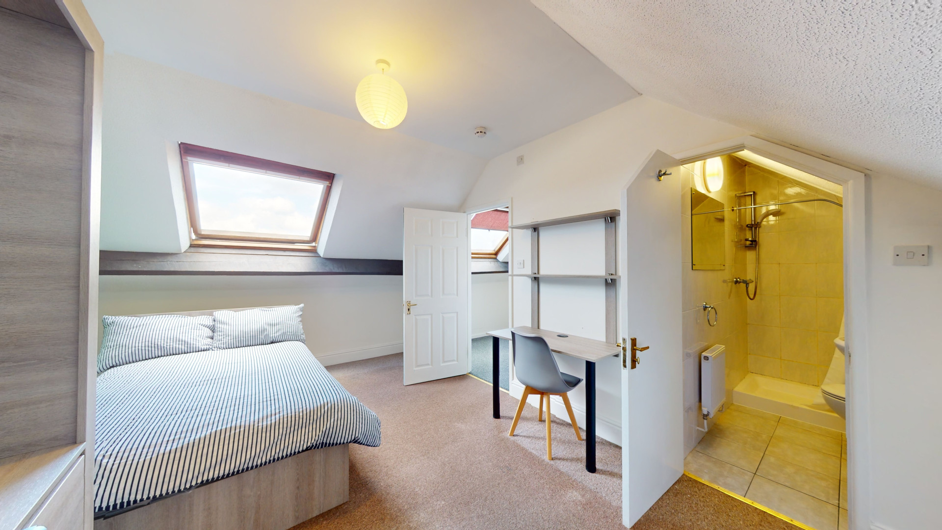 - Bedroom furniture: bed, desk, desk chair, wardrobe, and drawers