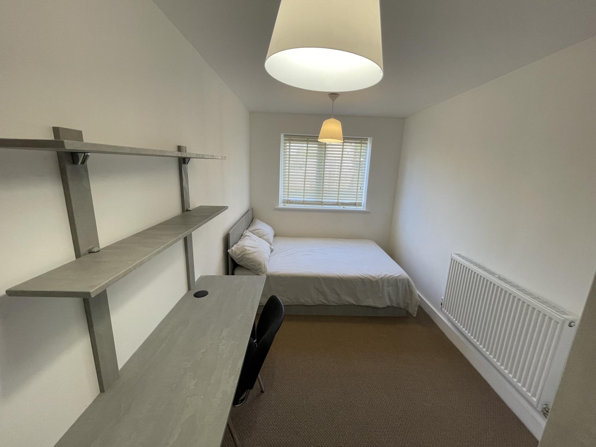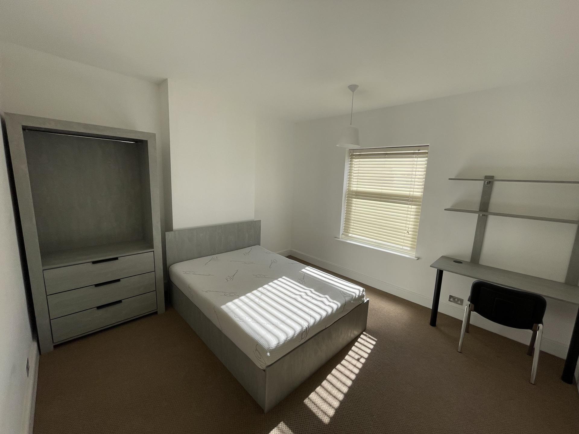 - Bedroom furniture: bed, desk, desk chair, wardrobe, and drawers