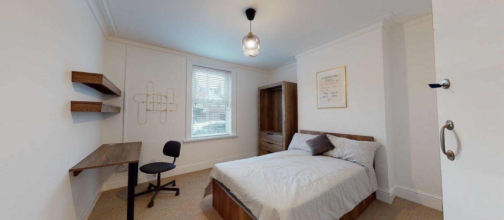 - Bedroom furniture: bed, desk, desk chair, wardrobe, and drawers