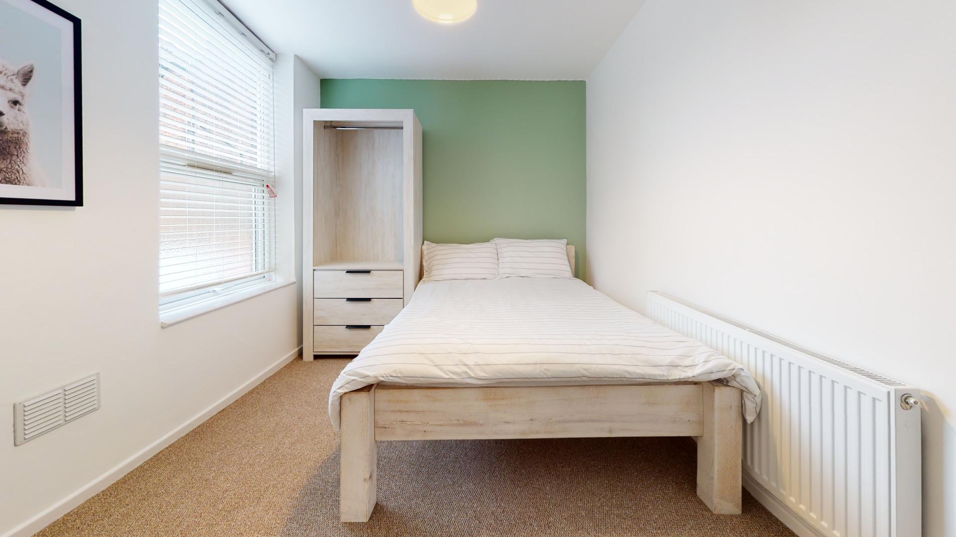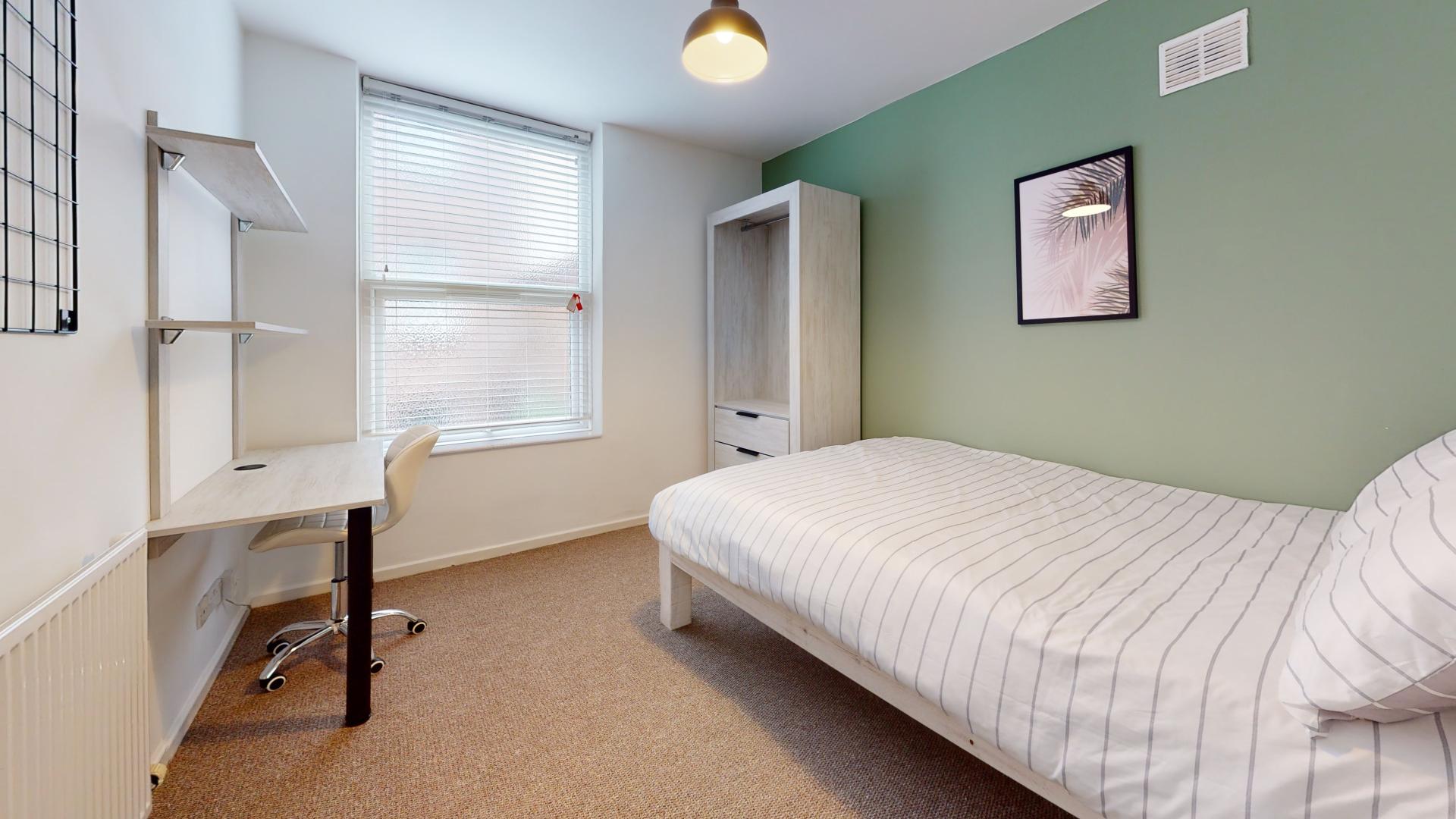 - Bedroom furniture: bed, desk, desk chair, wardrobe, and drawers