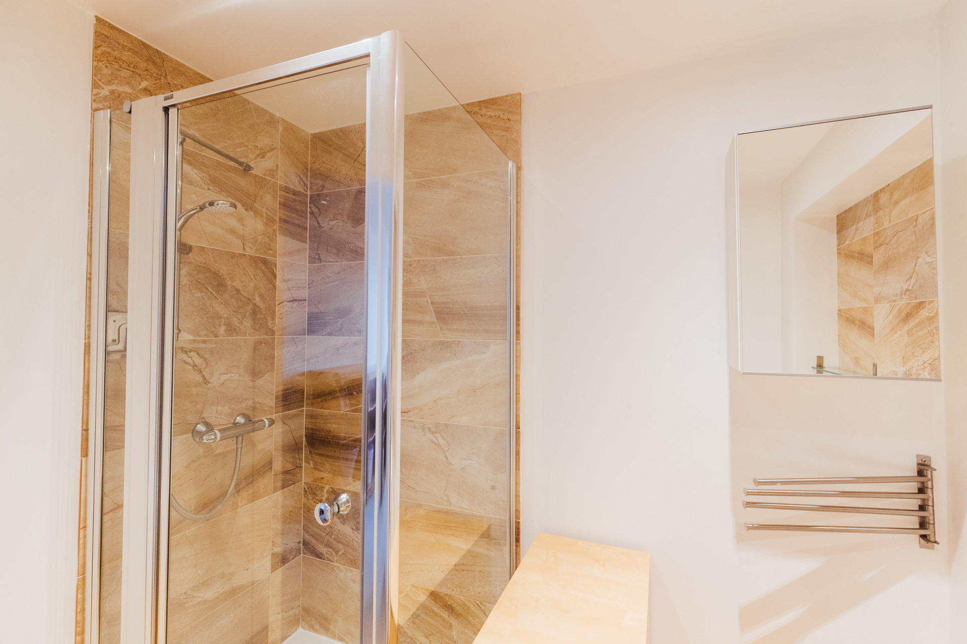 * Top floor: Final double bedroom + stylish bathroom with a bath AND a shower – splash central.