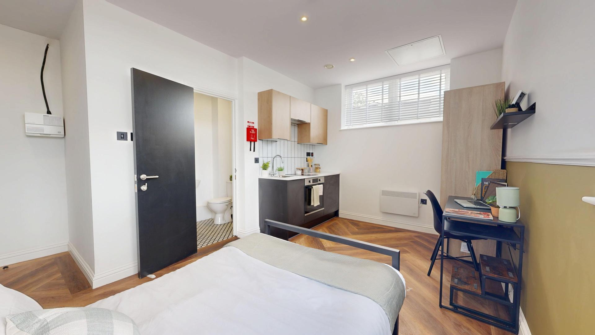 Welcome to Thurloe House, the premier choice for upscale student living in the vibrant heart of Rusholme. Our brand-new, 1-bed studio apartments are thoughtfully designed for students who appreciate both style and functionality. Step into a sleek, modern living space where comfort and contemporary design come together seamlessly.