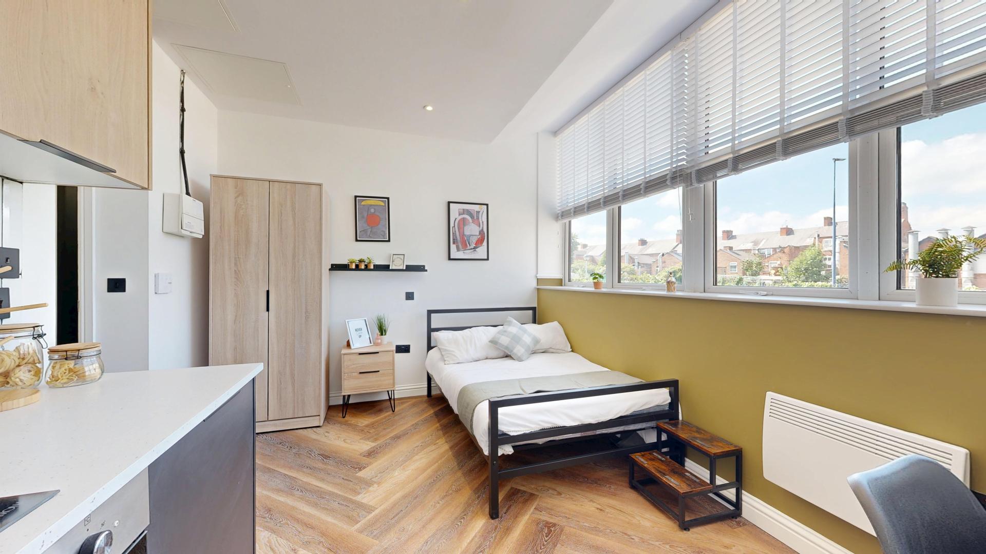 Welcome to Thurloe House, the premier choice for upscale student living in the vibrant heart of Rusholme. Our brand-new, 1-bed studio apartments are thoughtfully designed for students who appreciate both style and functionality. Step into a sleek, modern living space where comfort and contemporary design come together seamlessly.
