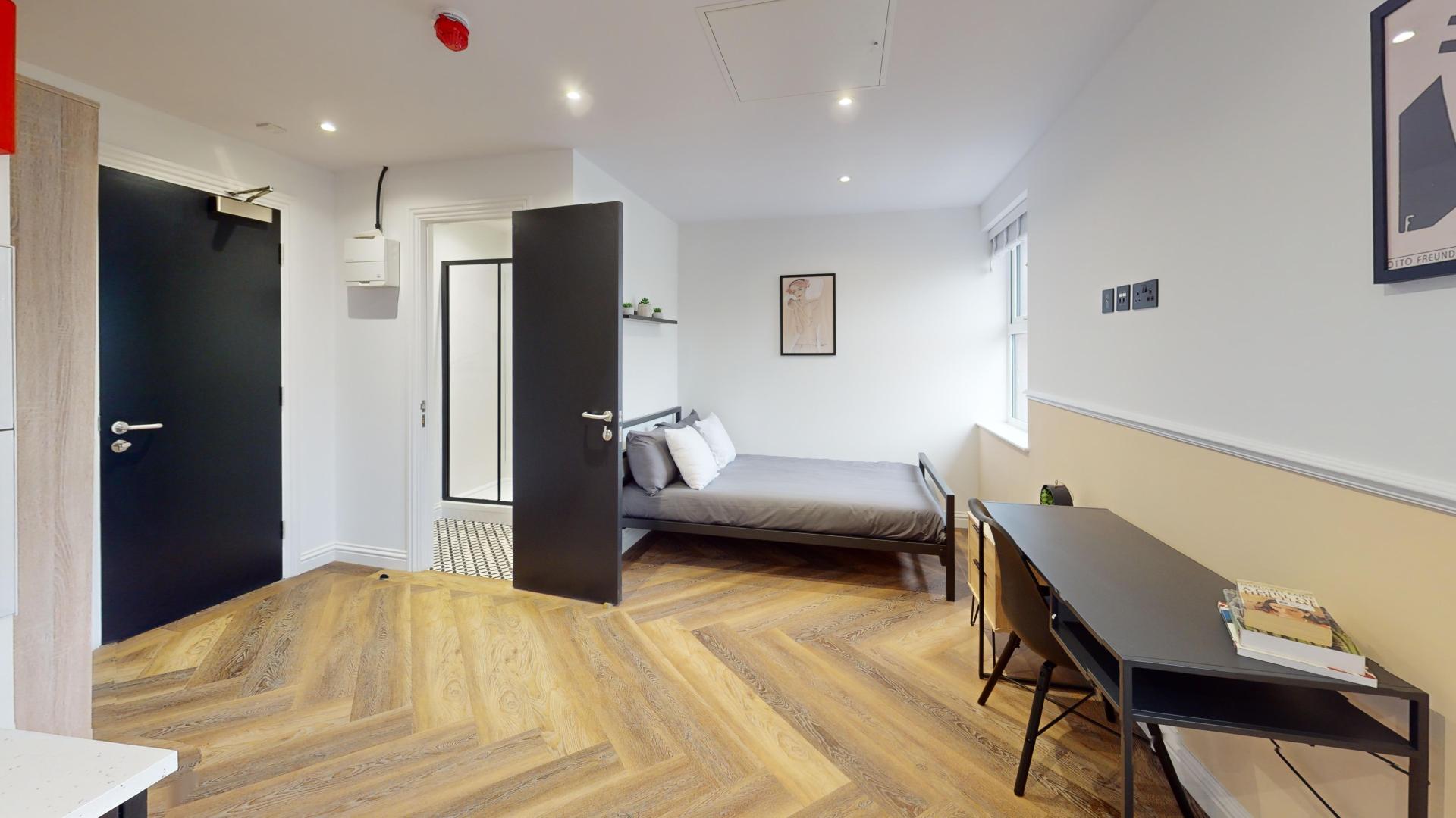 Welcome to Thurloe House, the premier choice for upscale student living in the vibrant heart of Rusholme. Our brand-new, 1-bed studio apartments are thoughtfully designed for students who appreciate both style and functionality. Step into a sleek, modern living space where comfort and contemporary design come together seamlessly.