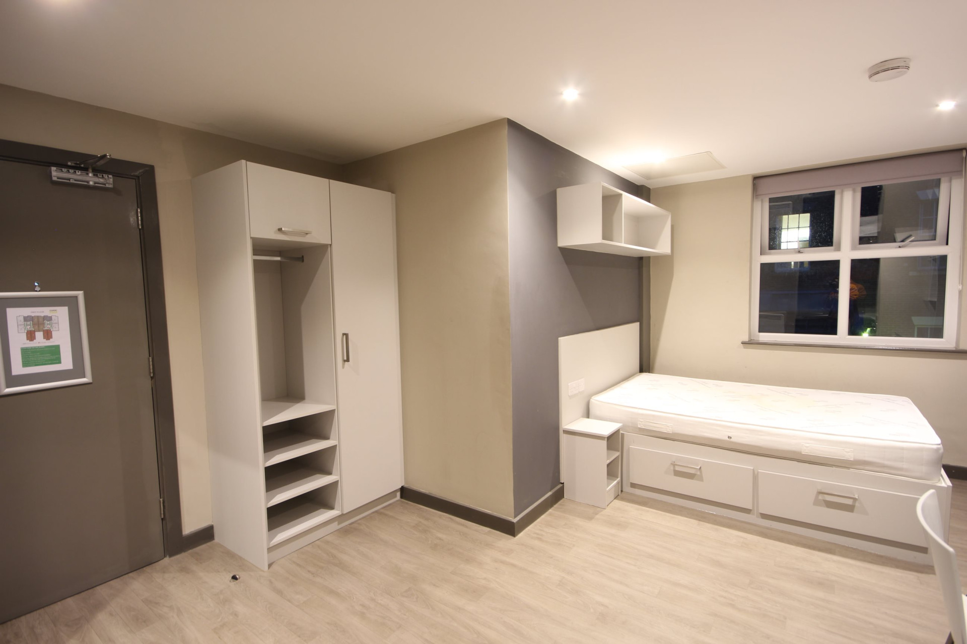 This stylish studio is situated in a block of flats, all managed by Loc8me, with the communal spaces being regularly maintained. This property is an ideal environment for students looking to study in a quiet and central location. The studios have been designed with maximising living and workspace in mind, making it the perfect choice for those wishing to be in a central location, with large rooms, without sacrificing their budget. The room is equipped with a desk, chair, kitchen, TV, and a double bed with storage!