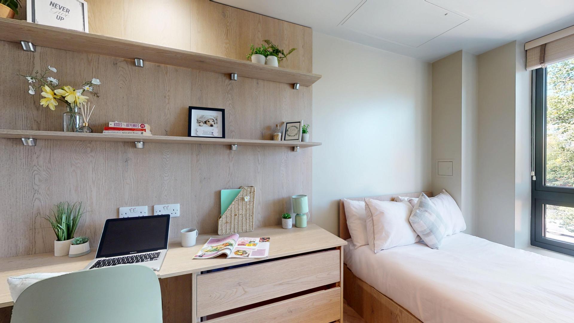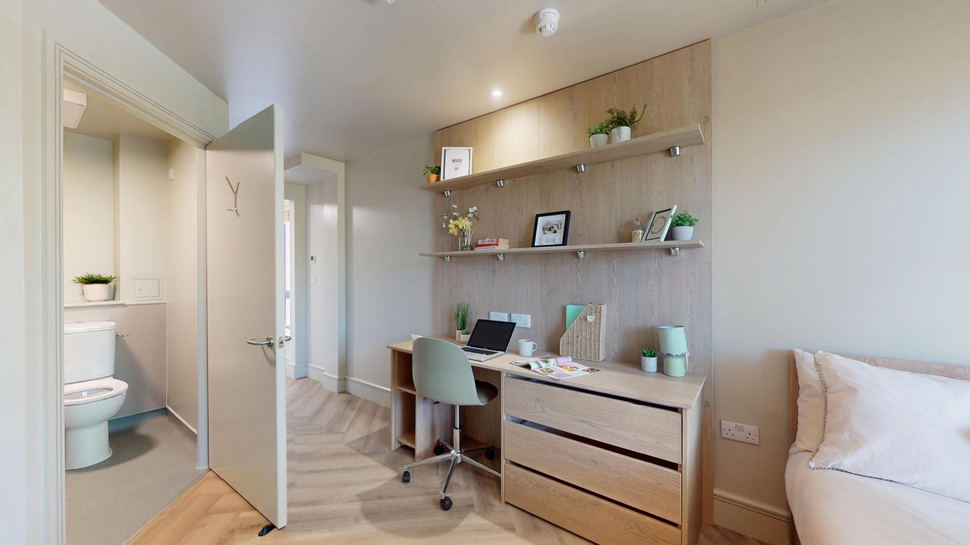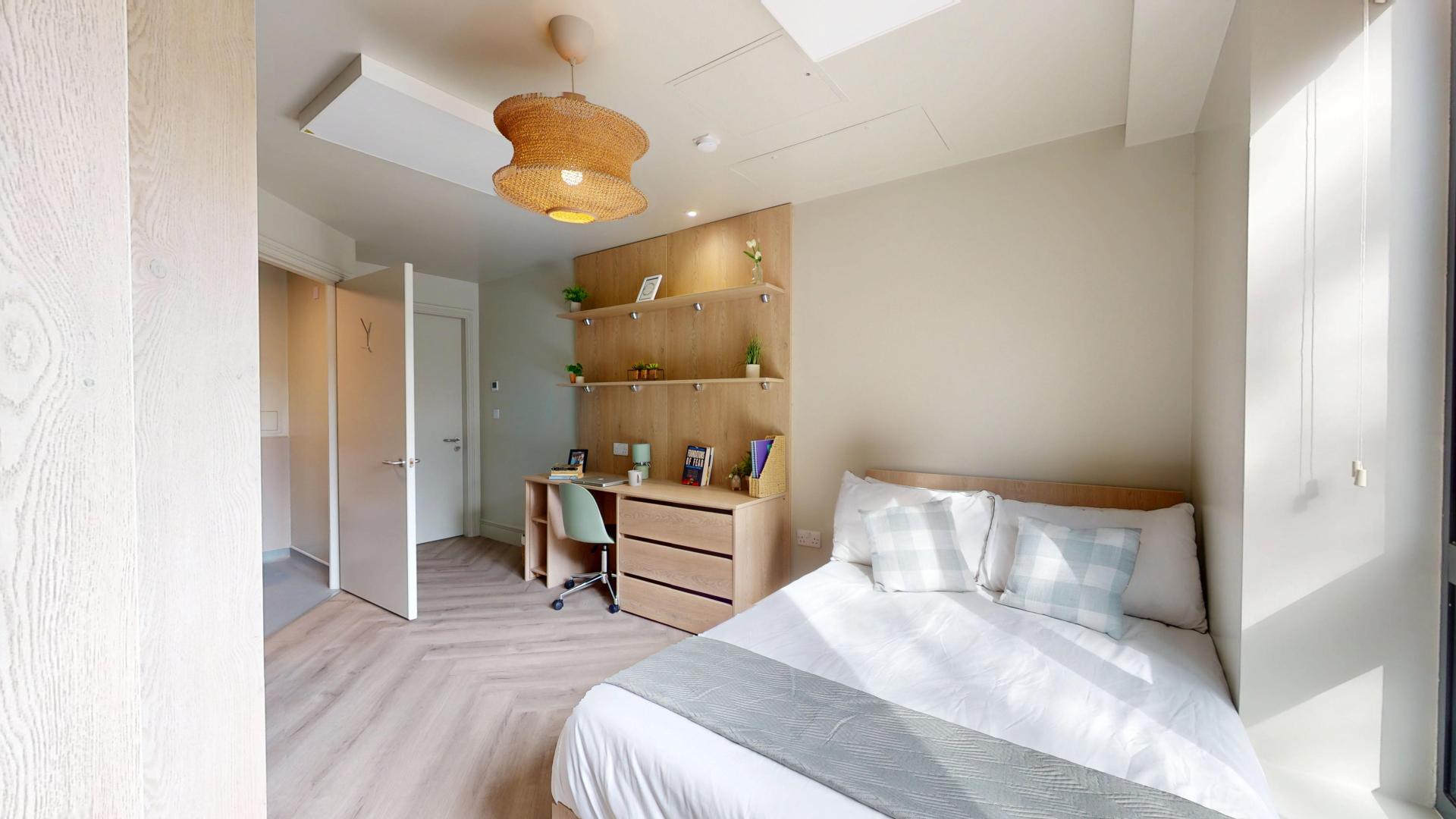 - Bedroom furniture: bed, desk, desk chair, wardrobe, and drawers