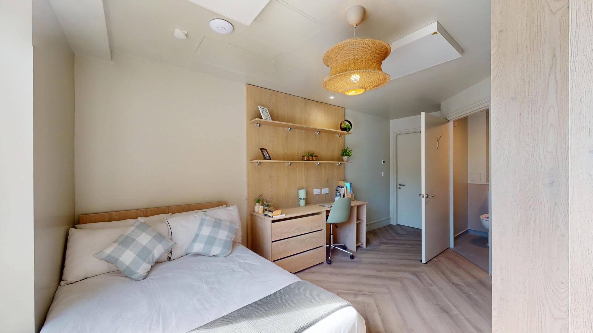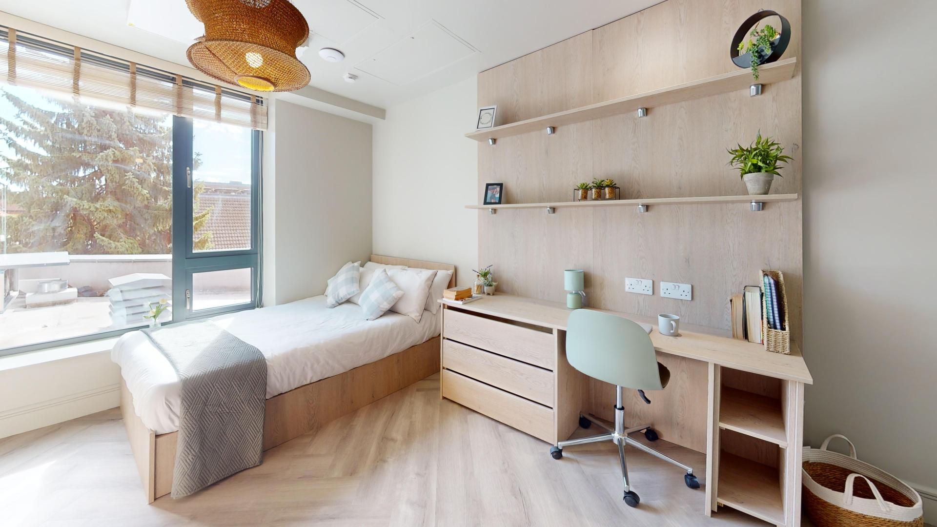 - Bedroom furniture: bed, desk, desk chair, wardrobe, and drawers