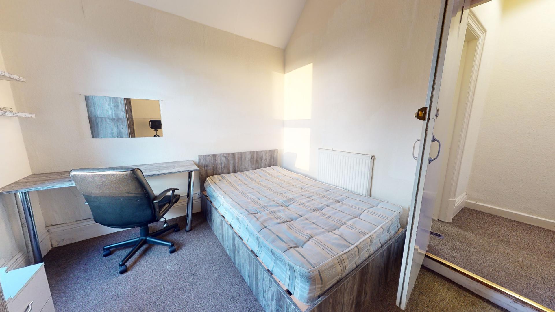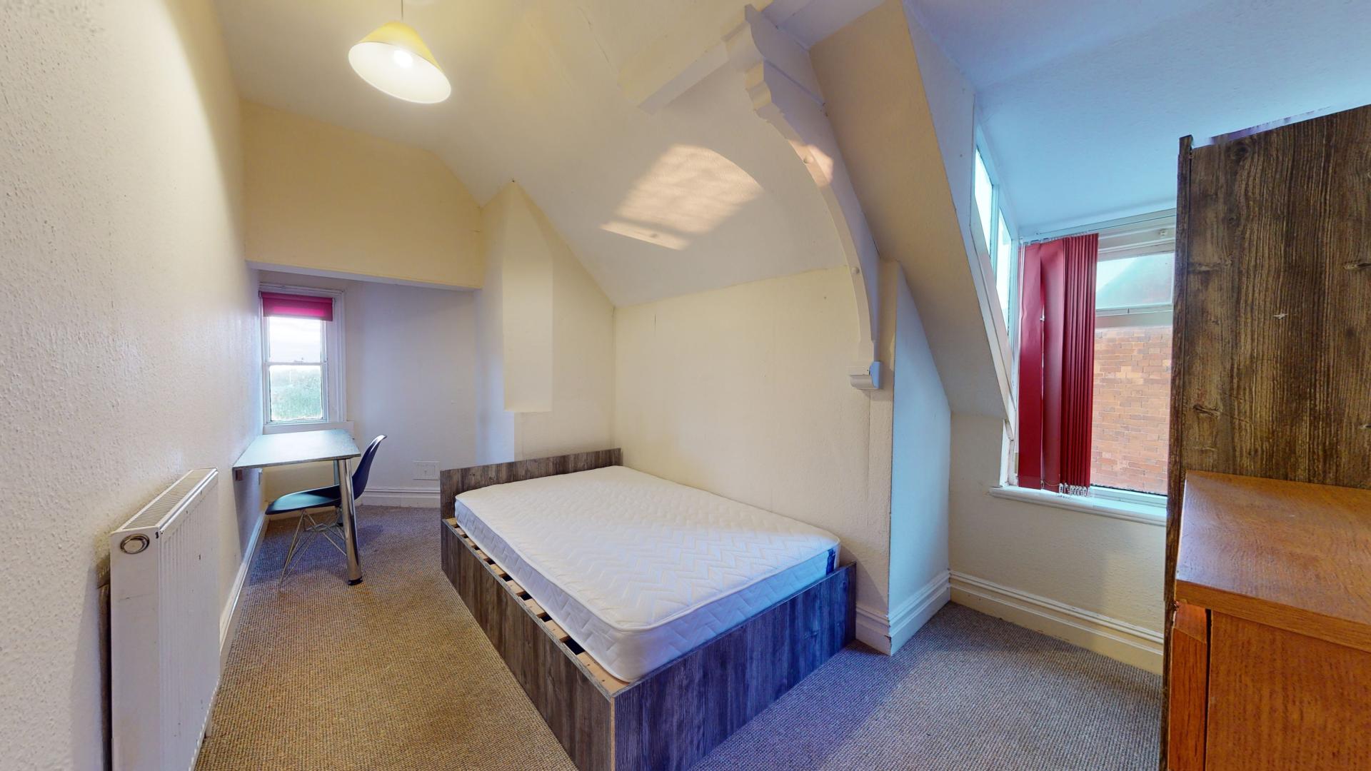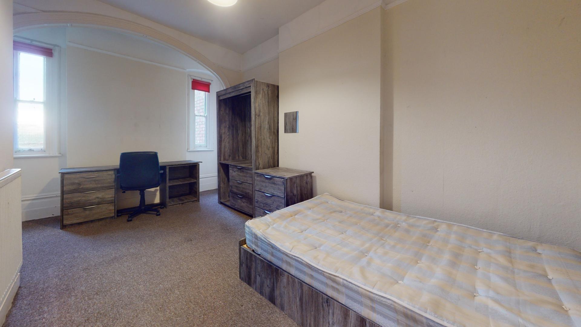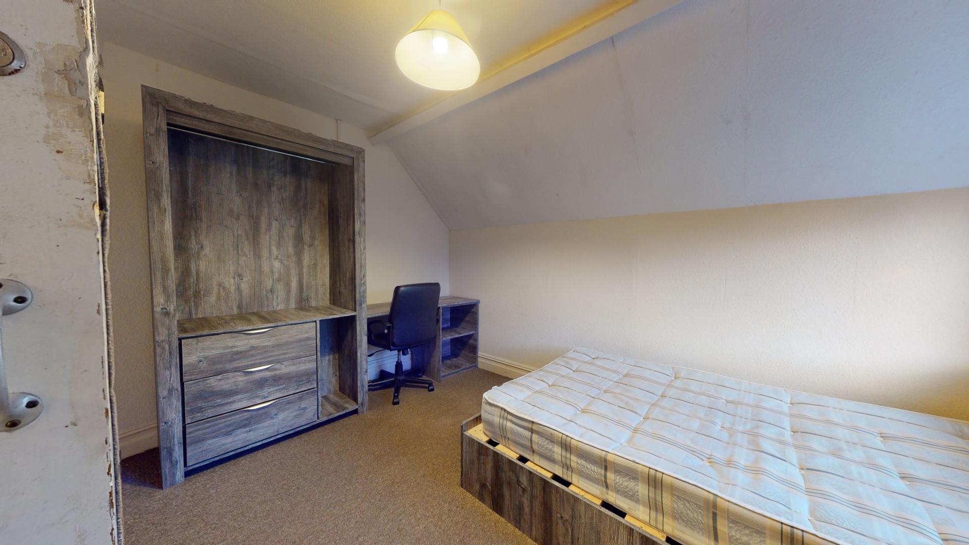 - Bedroom furniture: bed, desk, desk chair, wardrobe, and drawers