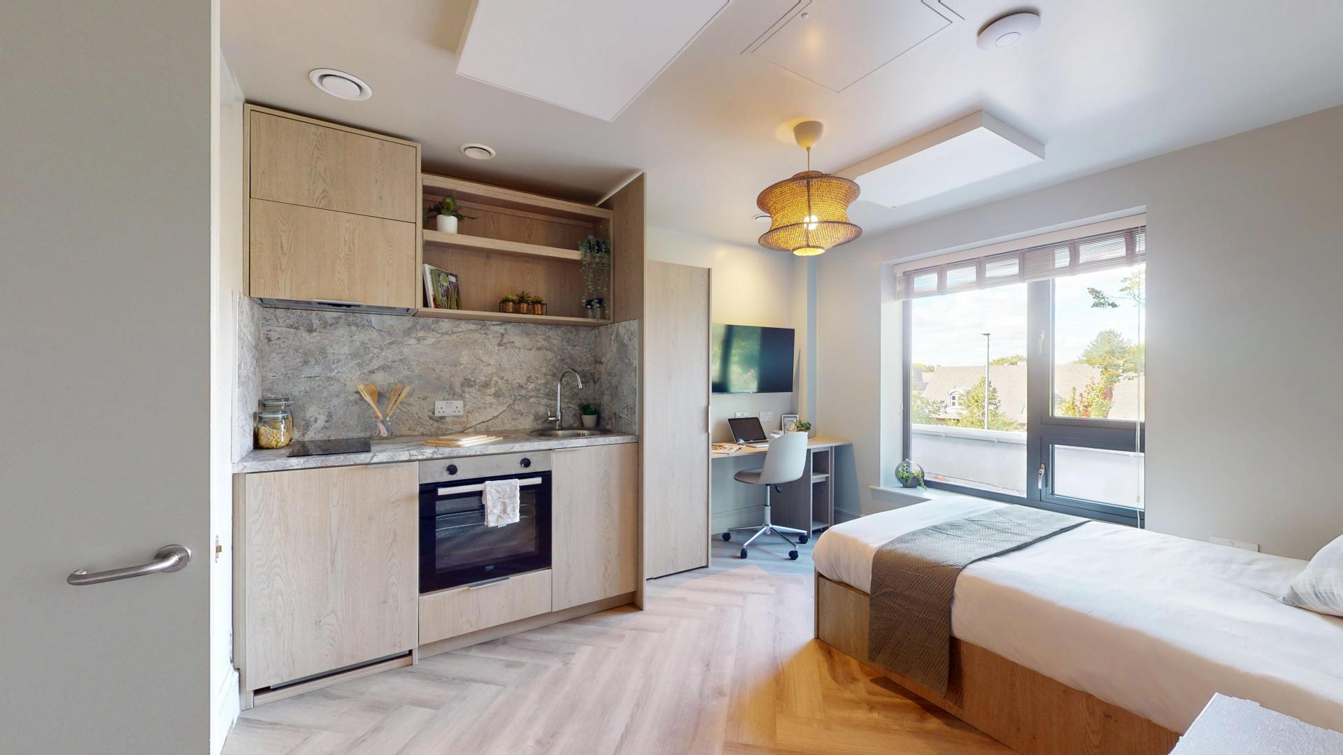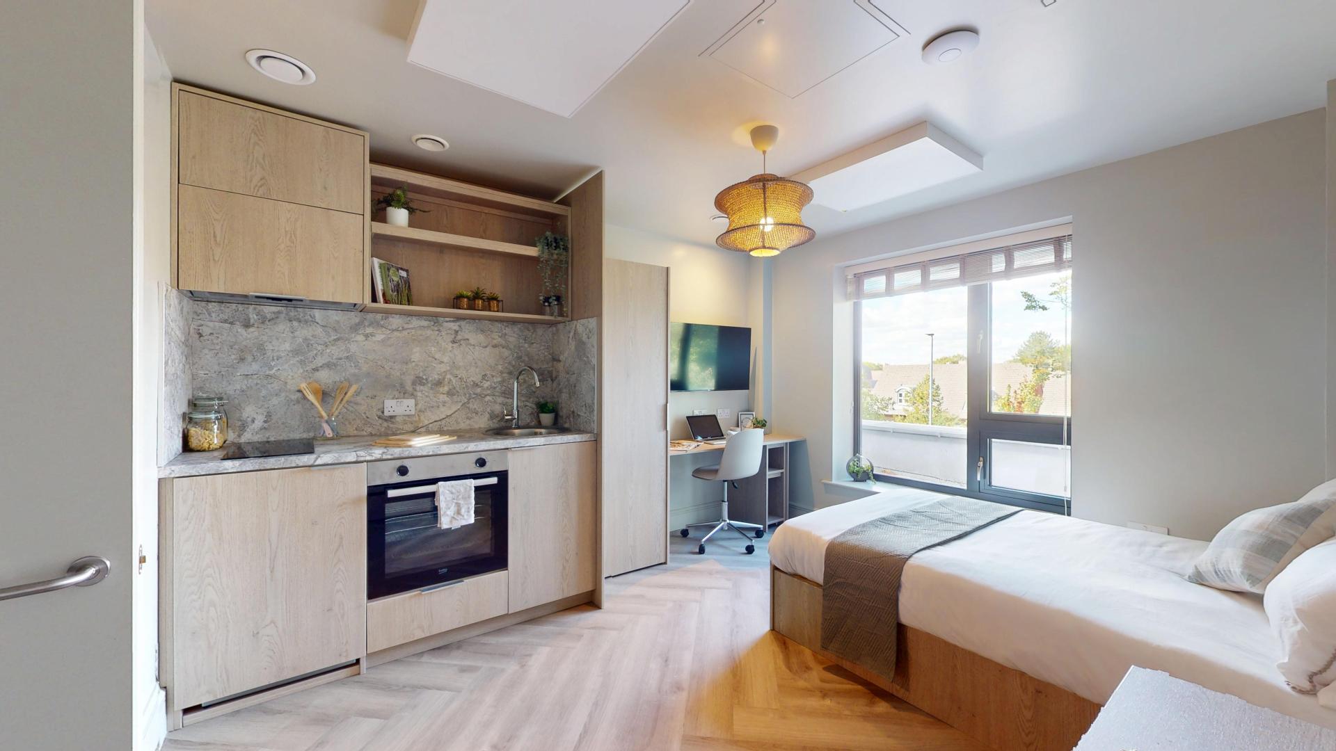 This brand new, fully refurbished studio flat offers modern and stylish living designed specifically for students. The property features a private en-suite shower room with contemporary fittings and a compact kitchenette equipped with brand new appliances, perfect for independent living. Fully furnished with modern furniture and ample storage, the flat combines comfort with functionality. High-speed Wi-Fi and all-inclusive bills ensure hassle-free living, while double glazing and excellent insulation make the space bright and energy-efficient. Ideally located close to campus, shops, and public transport links, this studio is ready to move in and perfect for students seeking convenience, comfort, and a contemporary lifestyle.