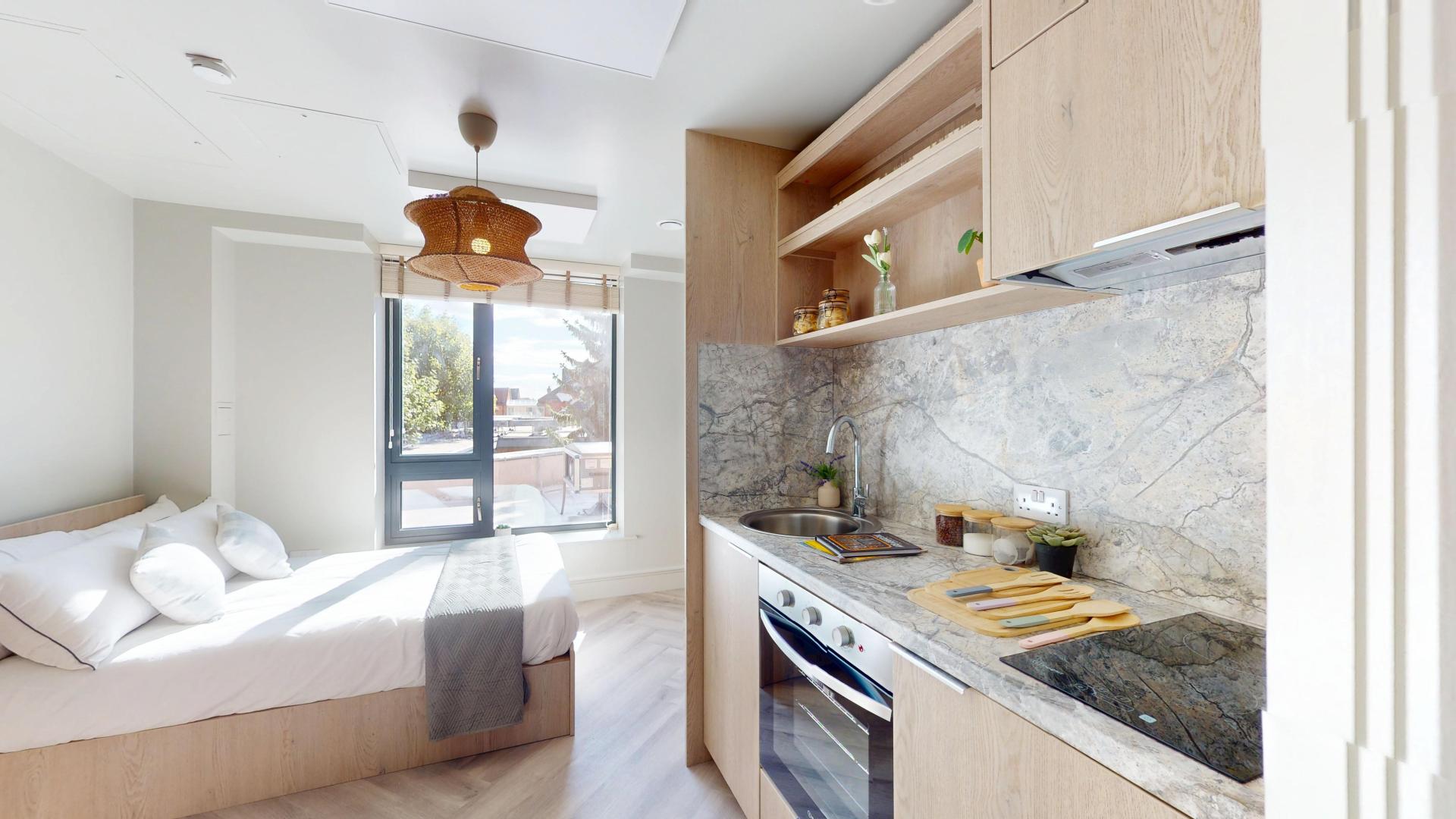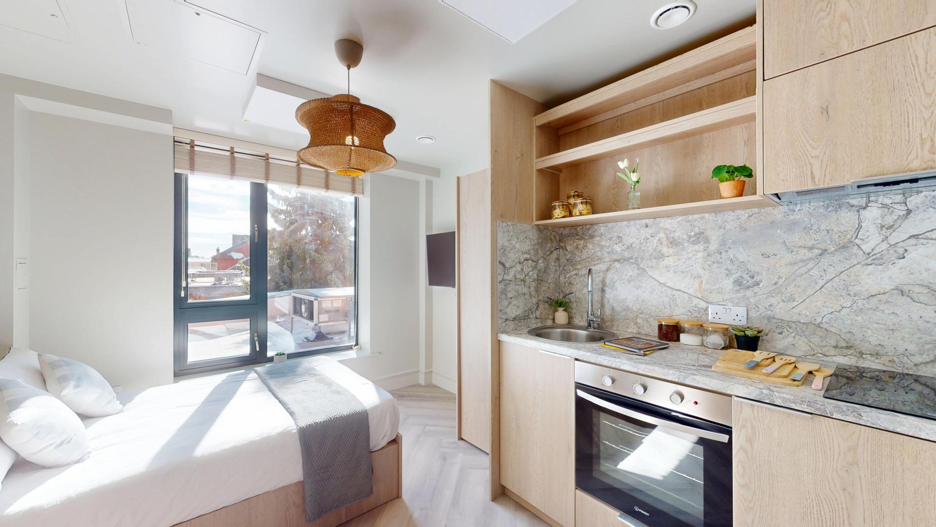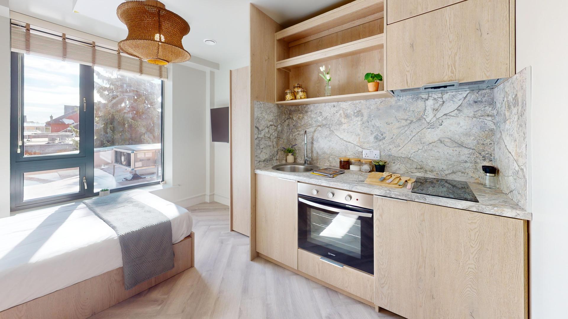 This brand new, fully refurbished studio flat offers modern and stylish living designed specifically for students. The property features a private en-suite shower room with contemporary fittings and a compact kitchenette equipped with brand new appliances, perfect for independent living. Fully furnished with modern furniture and ample storage, the flat combines comfort with functionality. High-speed Wi-Fi and all-inclusive bills ensure hassle-free living, while double glazing and excellent insulation make the space bright and energy-efficient. Ideally located close to campus, shops, and public transport links, this studio is ready to move in and perfect for students seeking convenience, comfort, and a contemporary lifestyle.