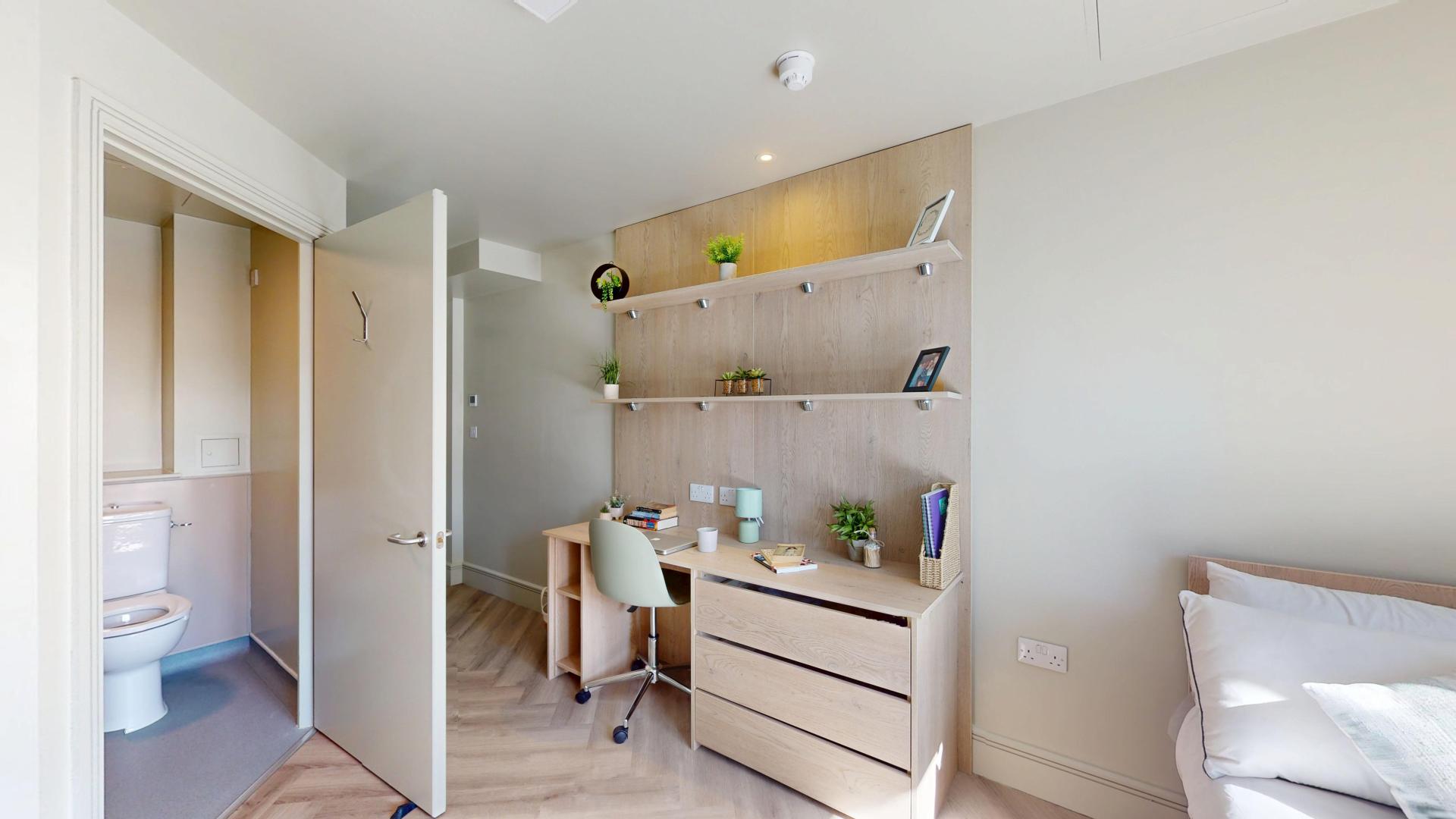 - Bedroom furniture: bed, desk, desk chair, wardrobe, and drawers