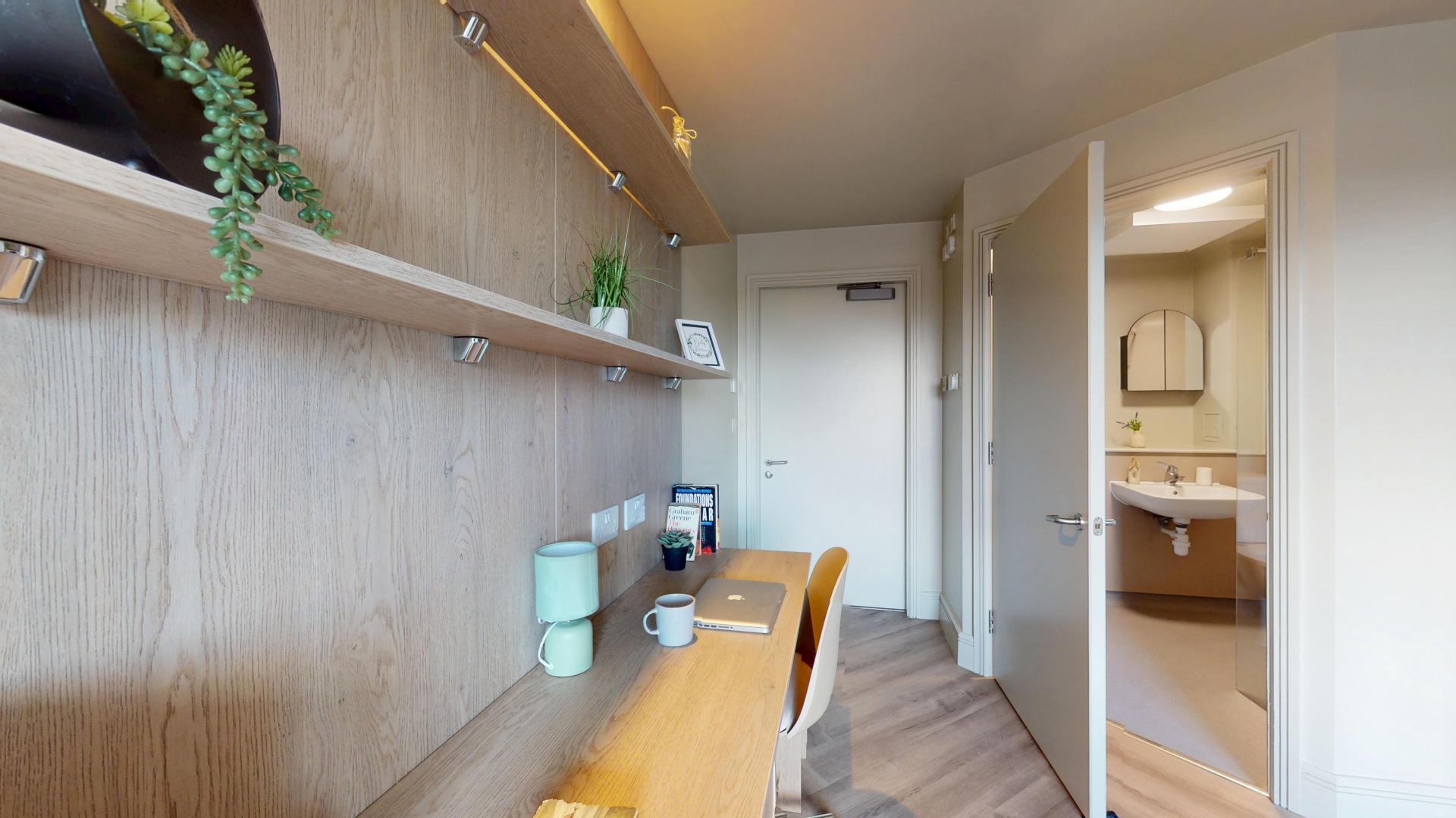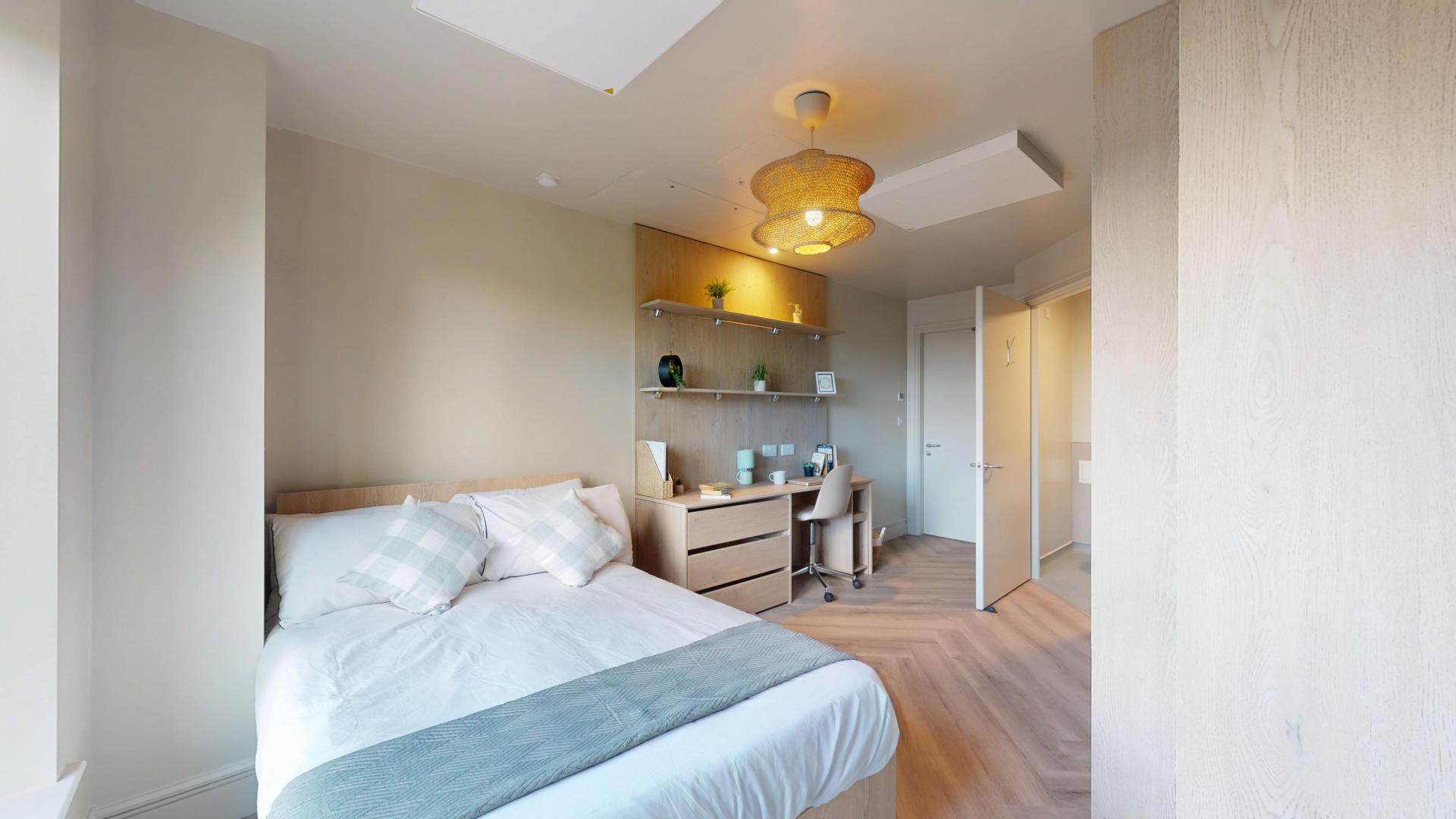 - Bedroom furniture: bed, desk, desk chair, wardrobe, and drawers