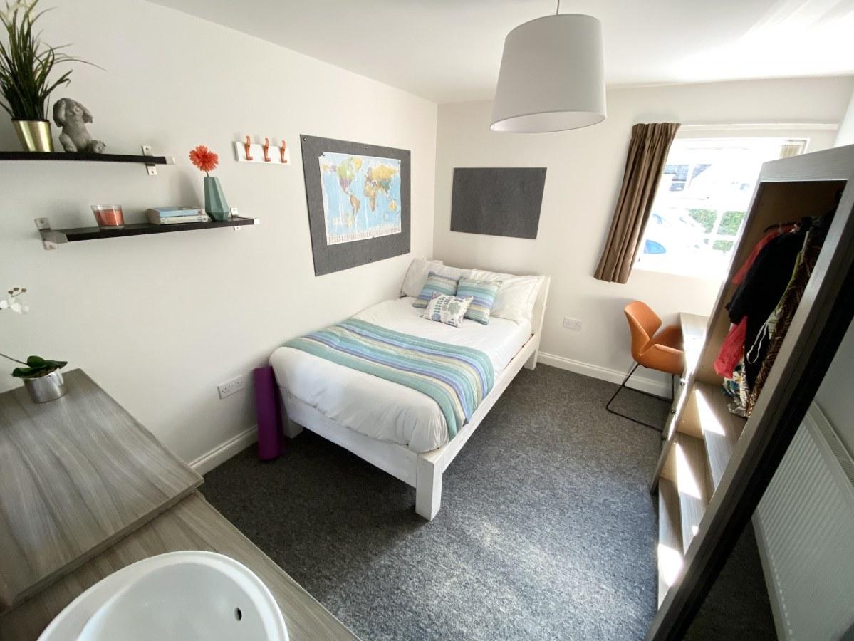 Condor bedrooms aren't your average, bland student rooms. Ours are tastefully decorated with extras like a full length mirror, noticeboard, fitted wardrobe and fitted desk.