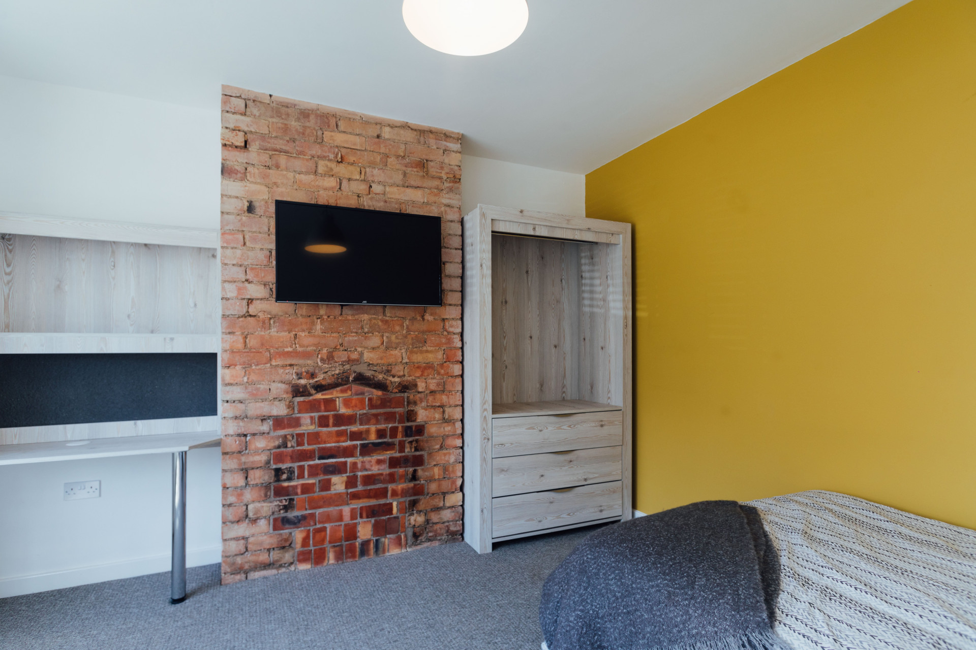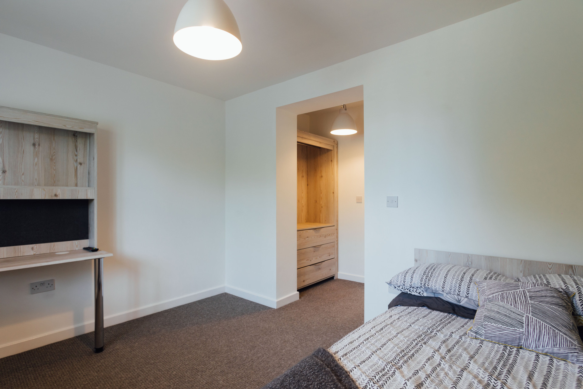 - Bedroom furniture: bed, desk, desk chair, wardrobe, and drawers