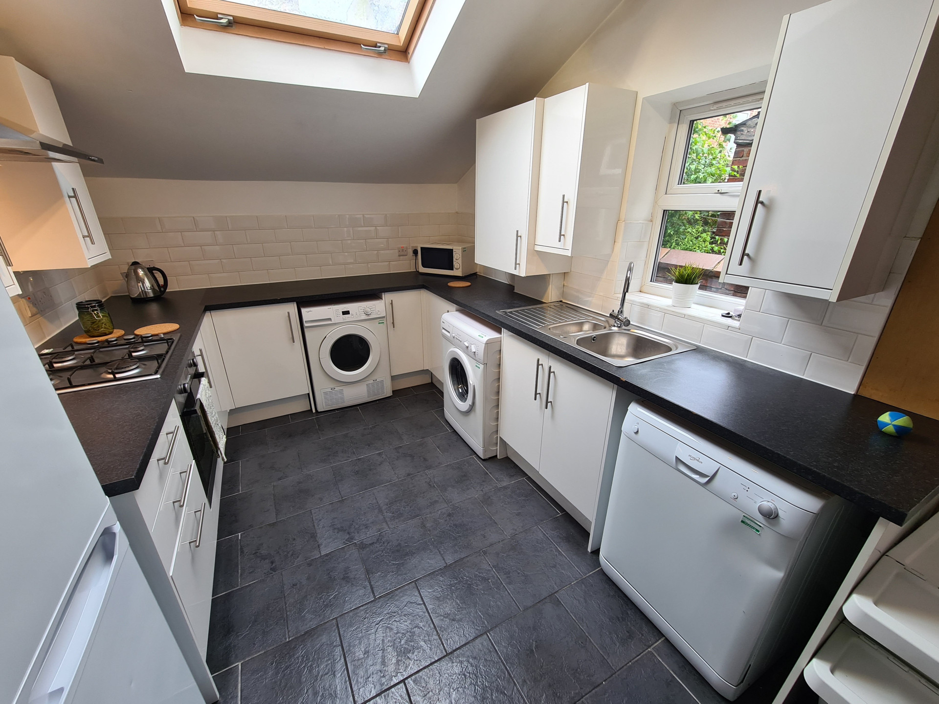 The modern open-plan kitchen is ideal for both cooking and socializing. Whether you're preparing meals for yourself or hosting a gathering with your housemates, the spacious kitchen allows for plenty of room to be creative in the kitchen while enjoying good company.