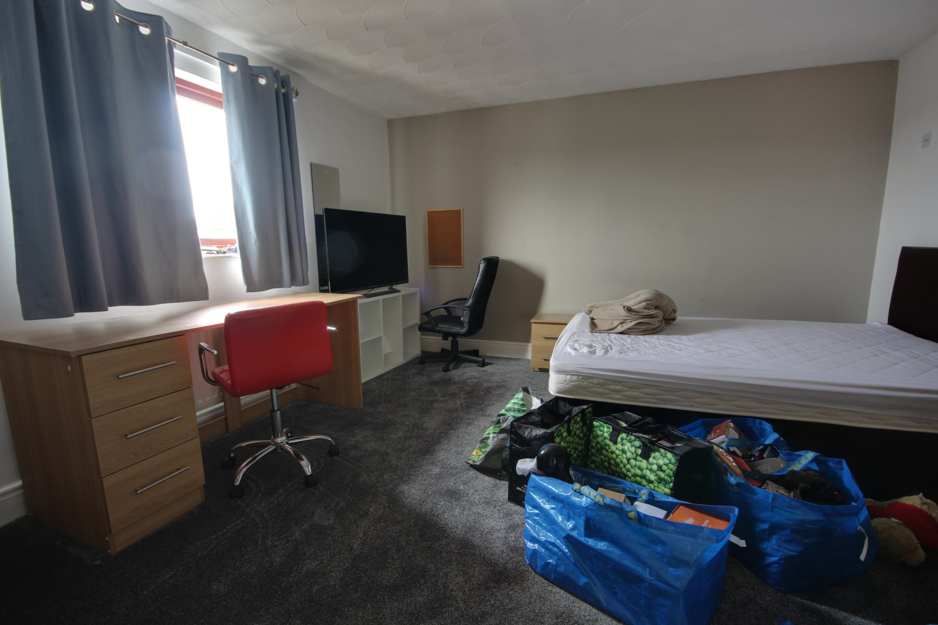 - Bedroom furniture: bed, desk, desk chair, wardrobe, and drawers