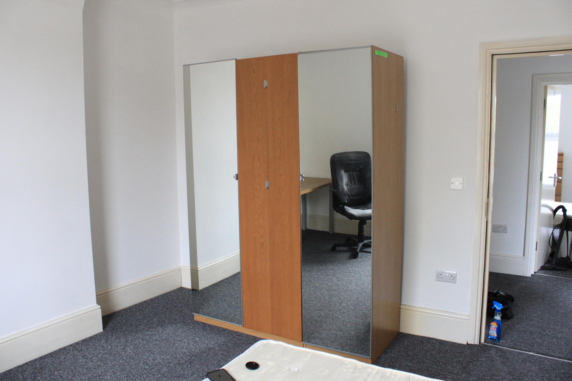 - Bedroom furniture: bed, desk, desk chair, wardrobe, and drawers