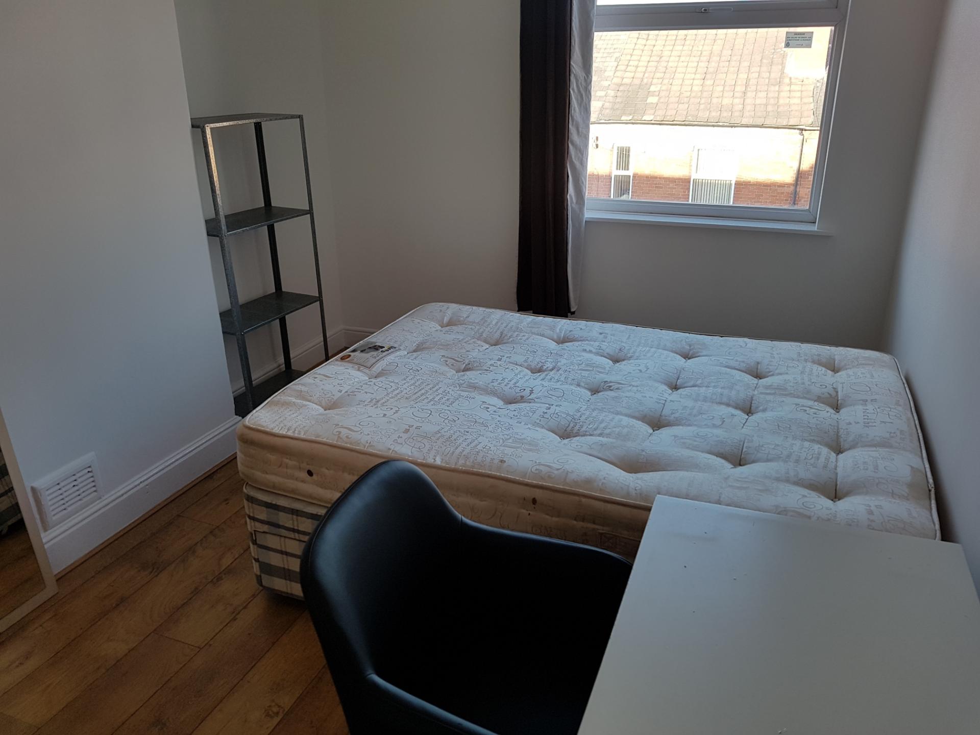 The accommodation comprises six good-sized double bedrooms, each fully furnished with a bed, desk, chair, and storage. There is a modern fitted kitchen with appliances, along with a spacious communal lounge providing a comfortable area for relaxing and socialising. The property further benefits from two bathrooms, both finished to a clean and practical standard.