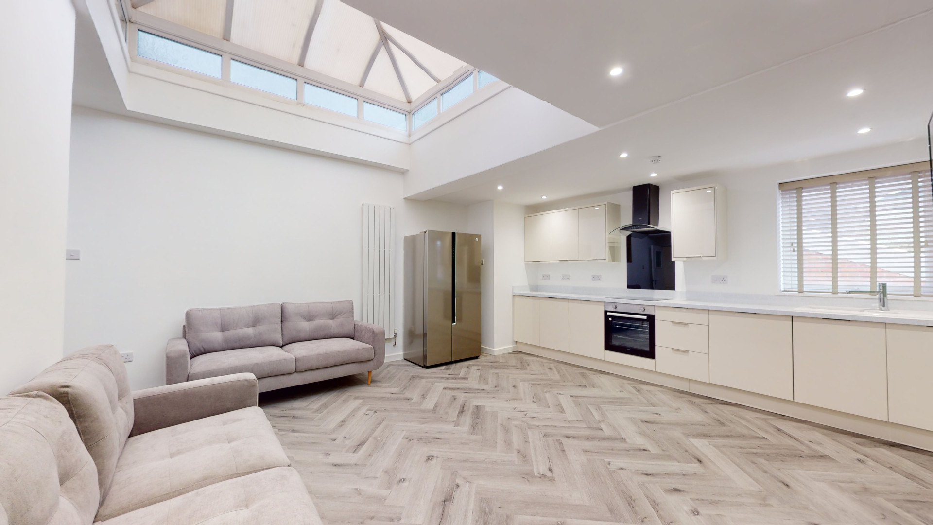 This newly refurbished apartment boasts four spacious bedrooms, each with its own TV, and two super modern bathrooms, ensuring that you and your flatmates have plenty of space and privacy.