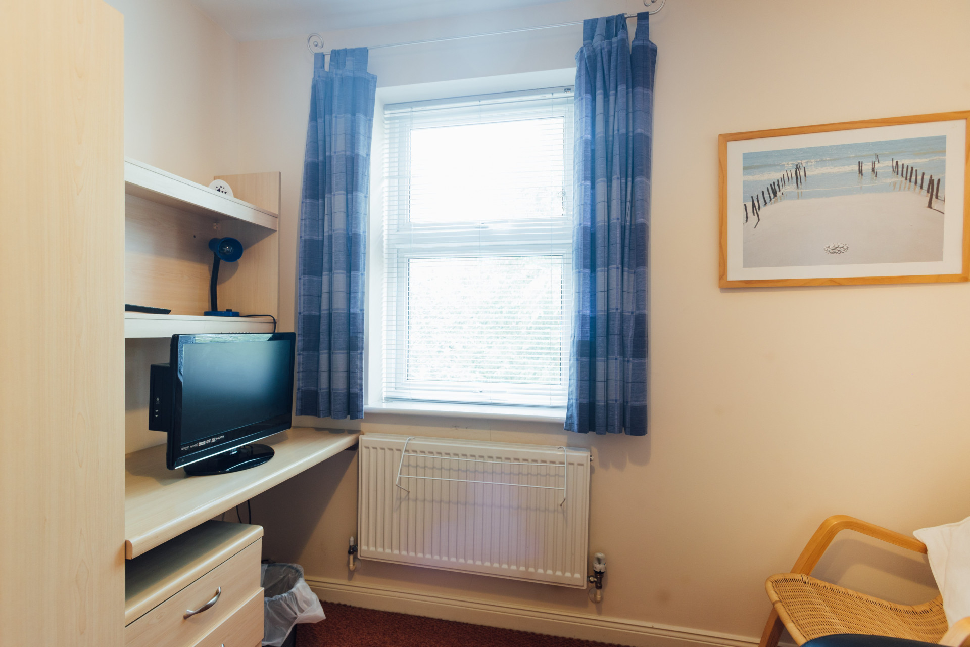 - Bedroom furniture: bed, desk, desk chair, wardrobe, and drawers