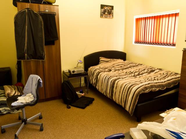 - Bedroom furniture: bed, desk, desk chair, wardrobe, and drawers