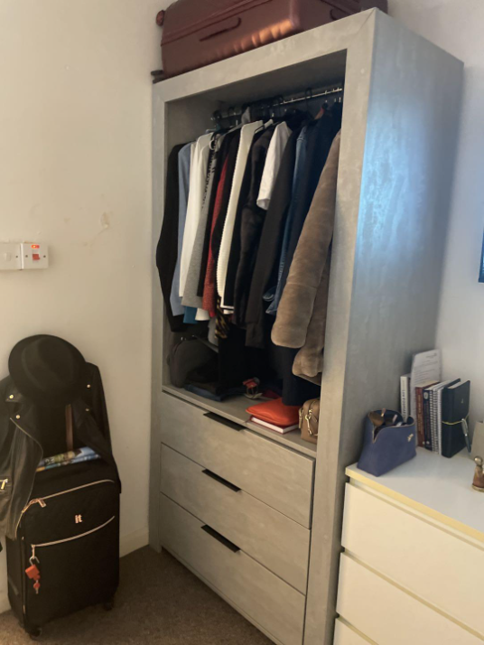 - Bedroom furniture: bed, desk, desk chair, wardrobe, and drawers
