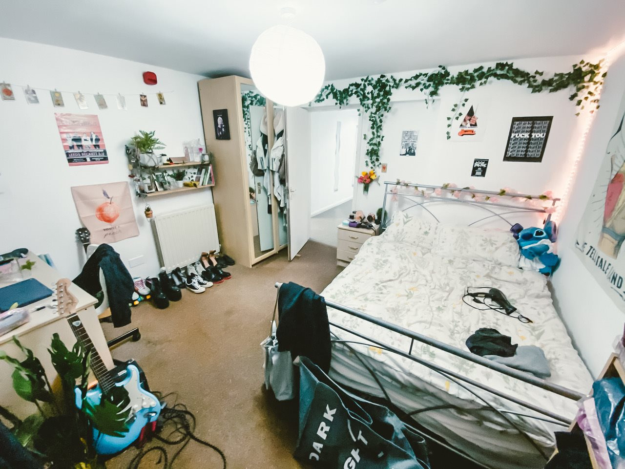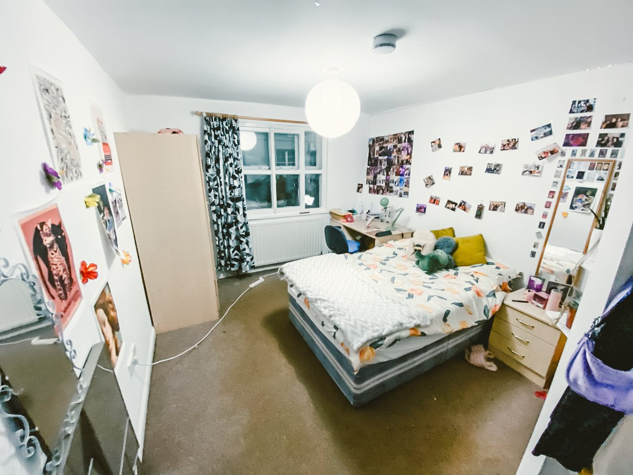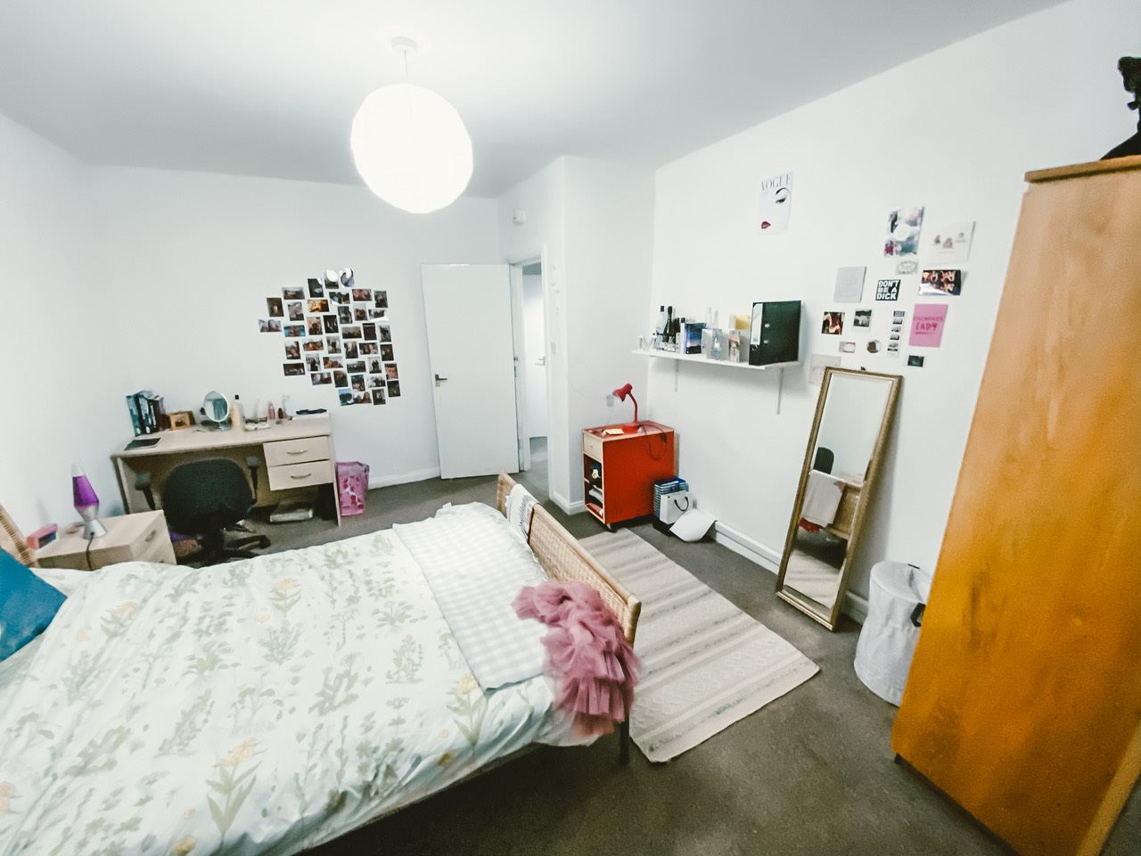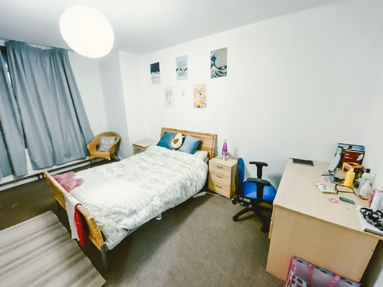- Bedroom furniture: bed, desk, desk chair, wardrobe, and drawers