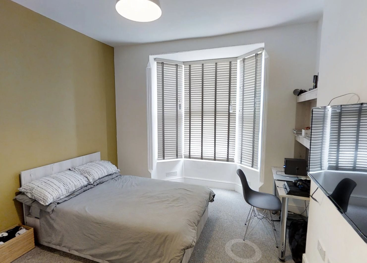 - Bedroom furniture: bed, desk, desk chair, wardrobe, and drawers