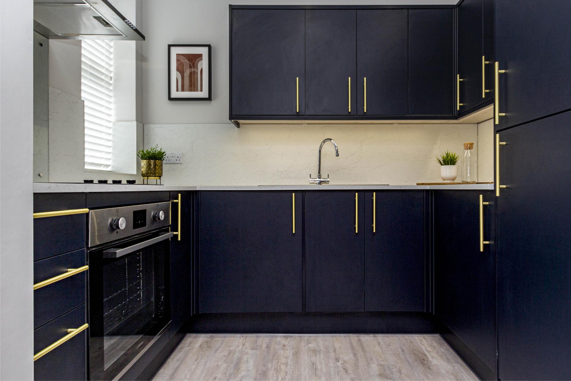 The apartment features a bright open-plan living space with contemporary furnishings, a fully fitted kitchen with modern appliances, and two spacious en-suite double bedroom designed for both study and relaxation. The sleek bathrooms are finished to a high standard, adding to the property’s fresh, modern feel.