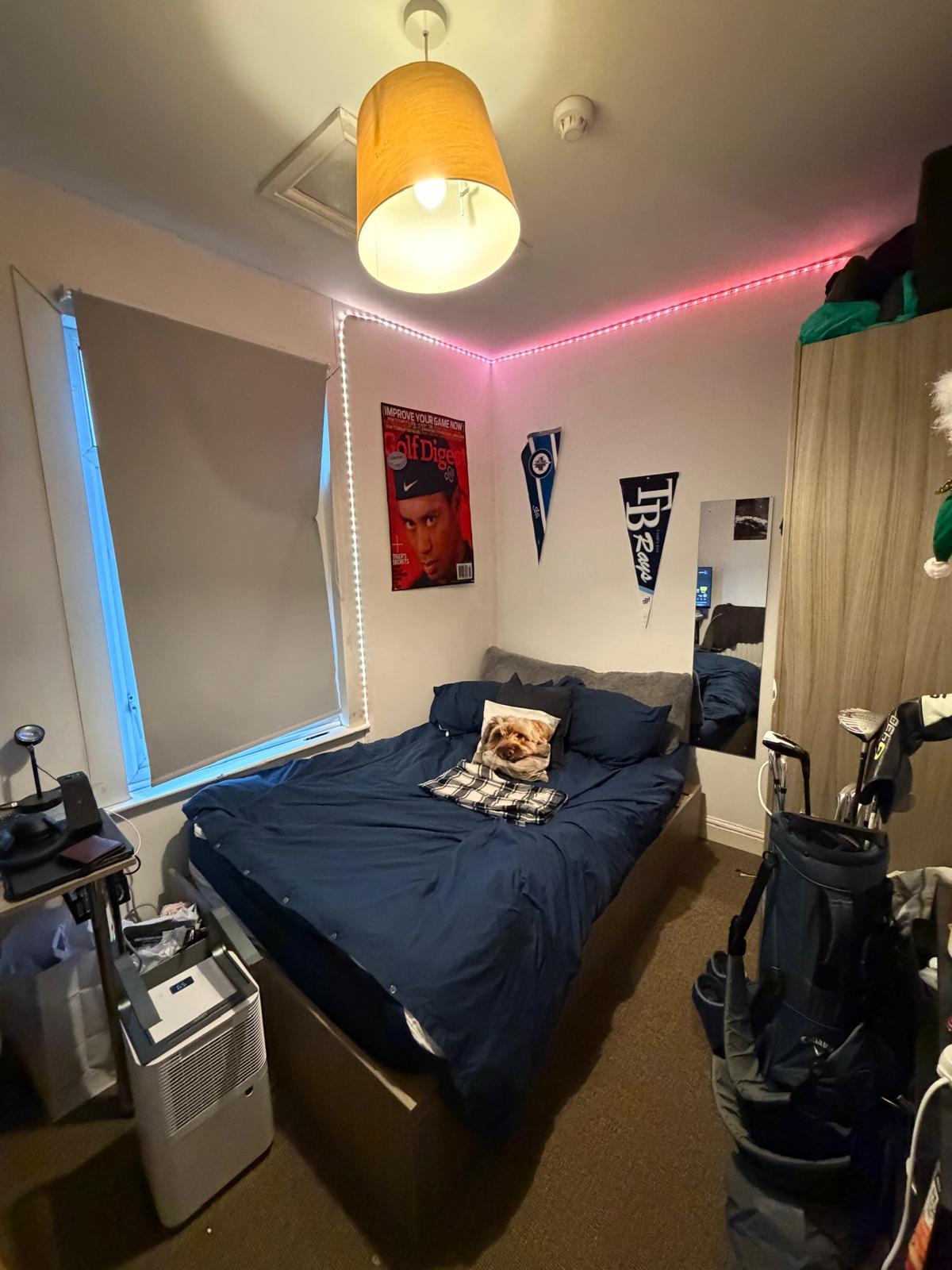 - Bedroom furniture: bed, desk, desk chair, wardrobe, and drawers