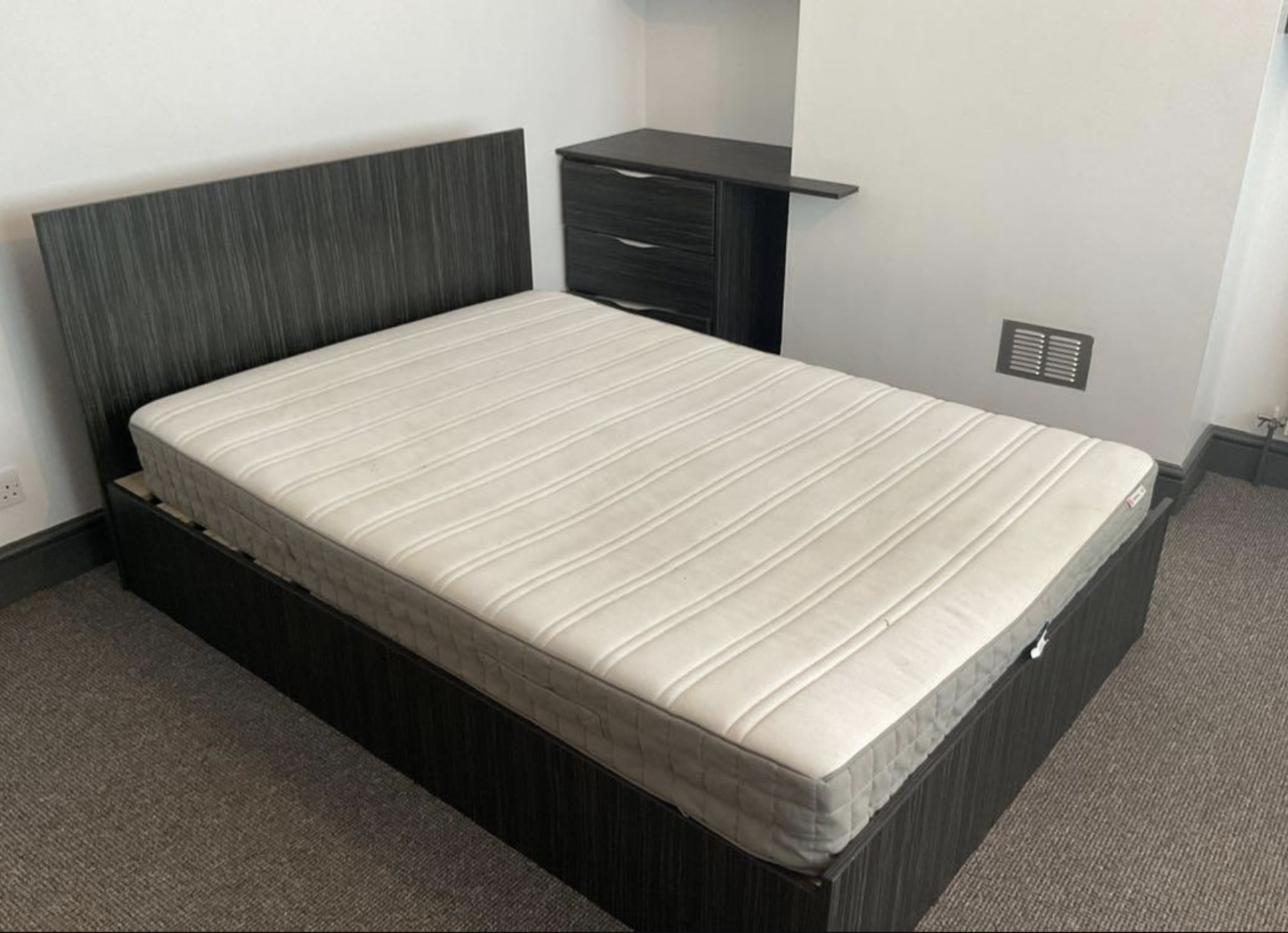 - Bedroom furniture: bed, desk, desk chair, wardrobe, and drawers