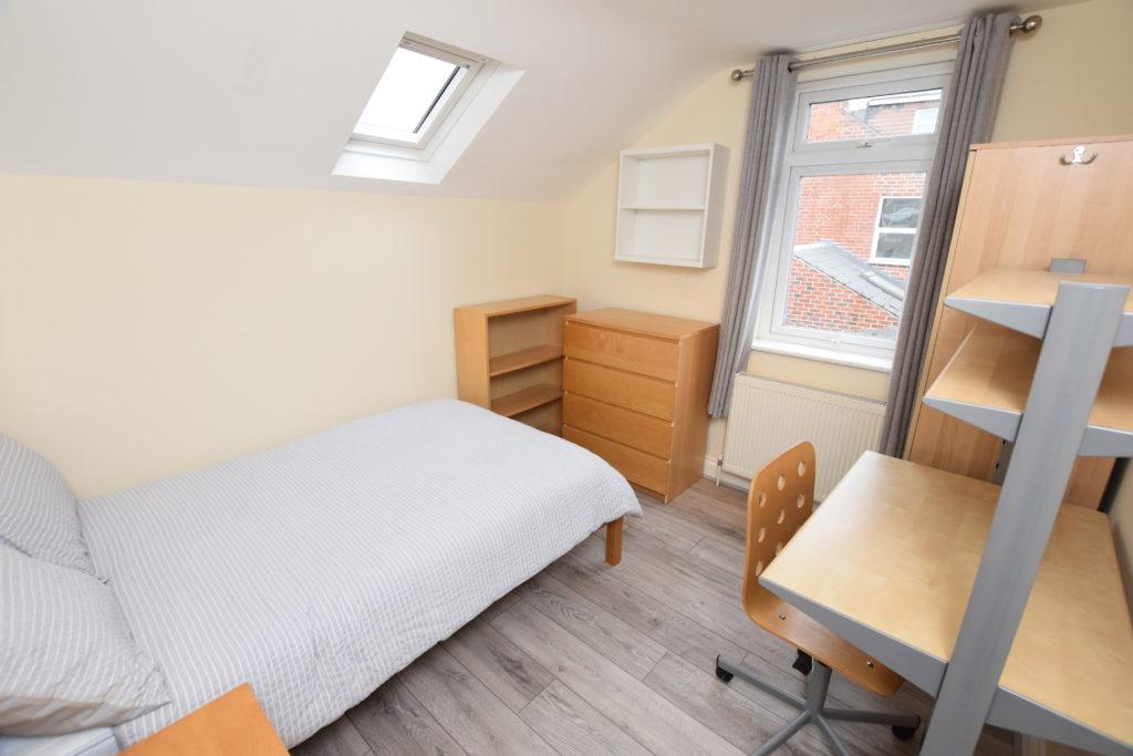 - Bedroom furniture: bed, desk, desk chair, wardrobe, and drawers