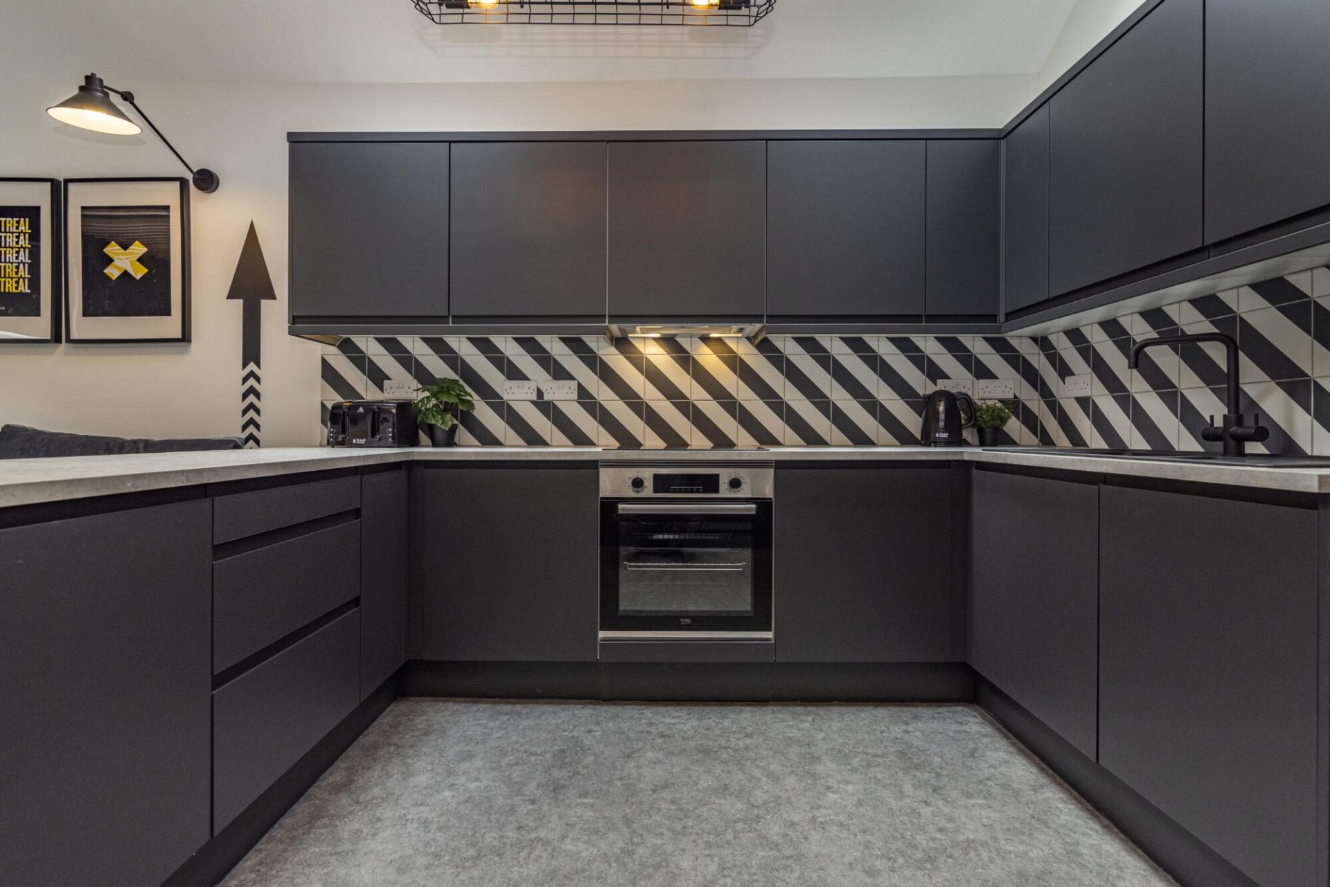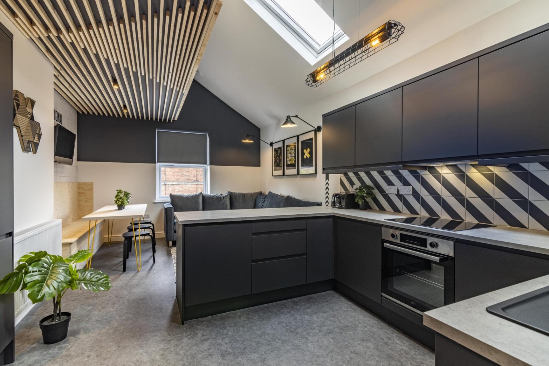 Inside, we have a newly refurbished communal living space, with a clean modern kitchen and comfortable seating/dining area.