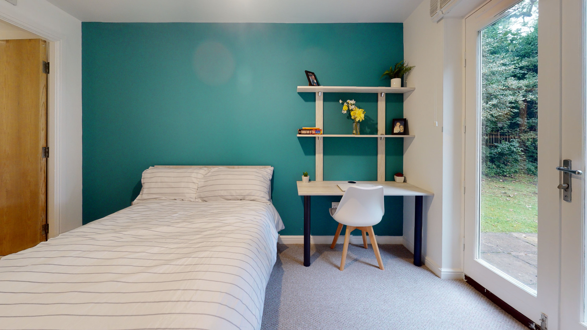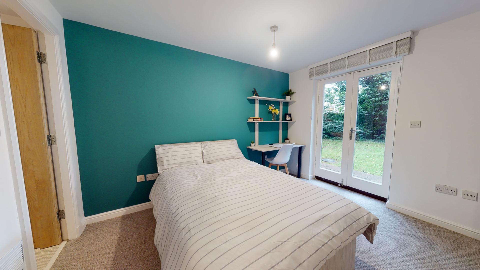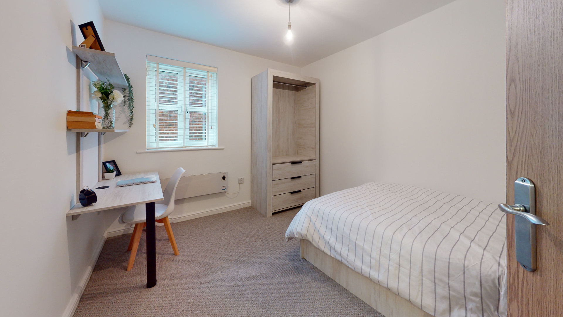 - Bedroom furniture: bed, desk, desk chair, wardrobe, and drawers