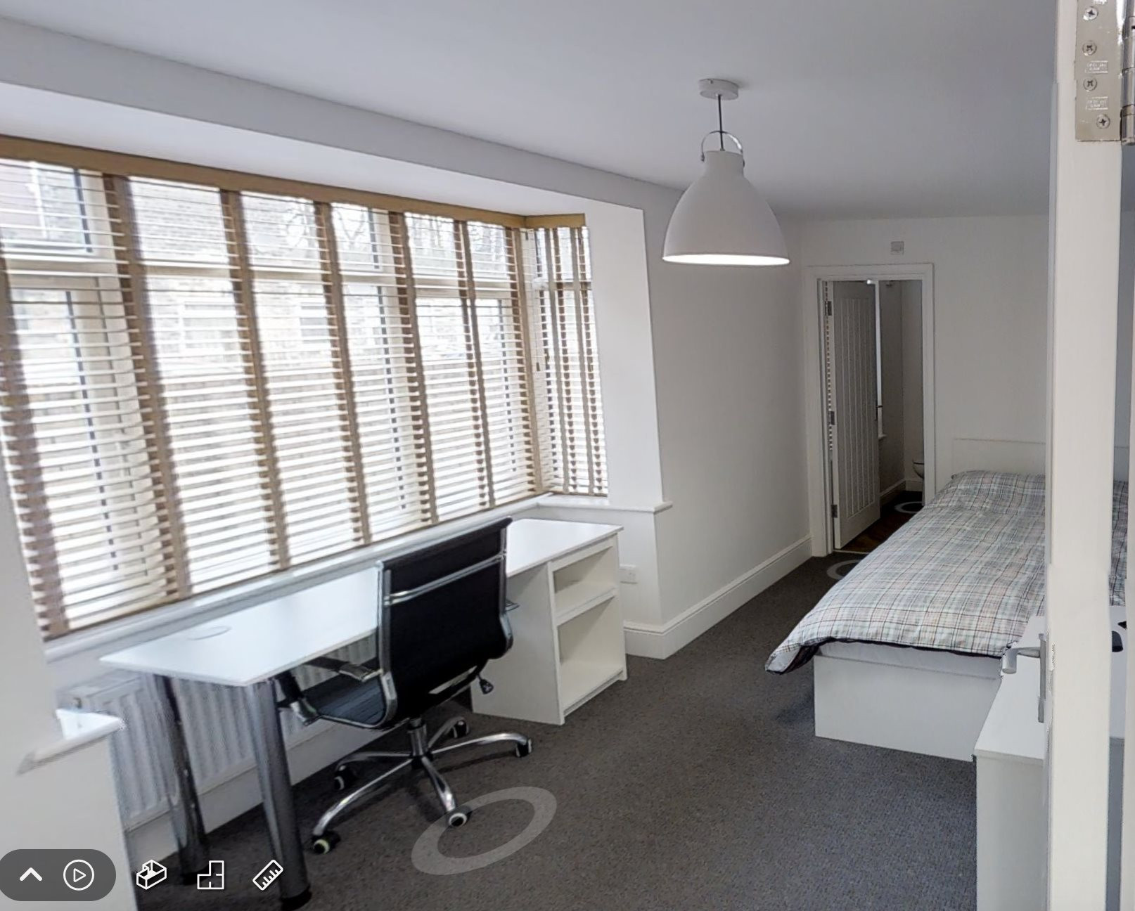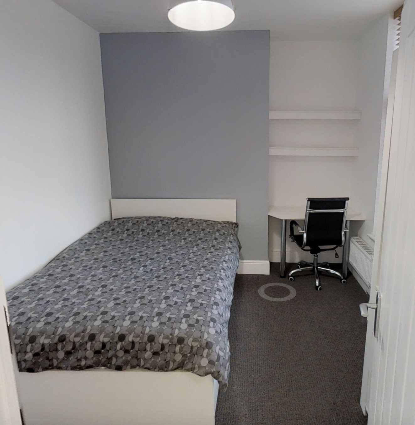 - Bedroom furniture: bed, desk, desk chair, wardrobe, and drawers