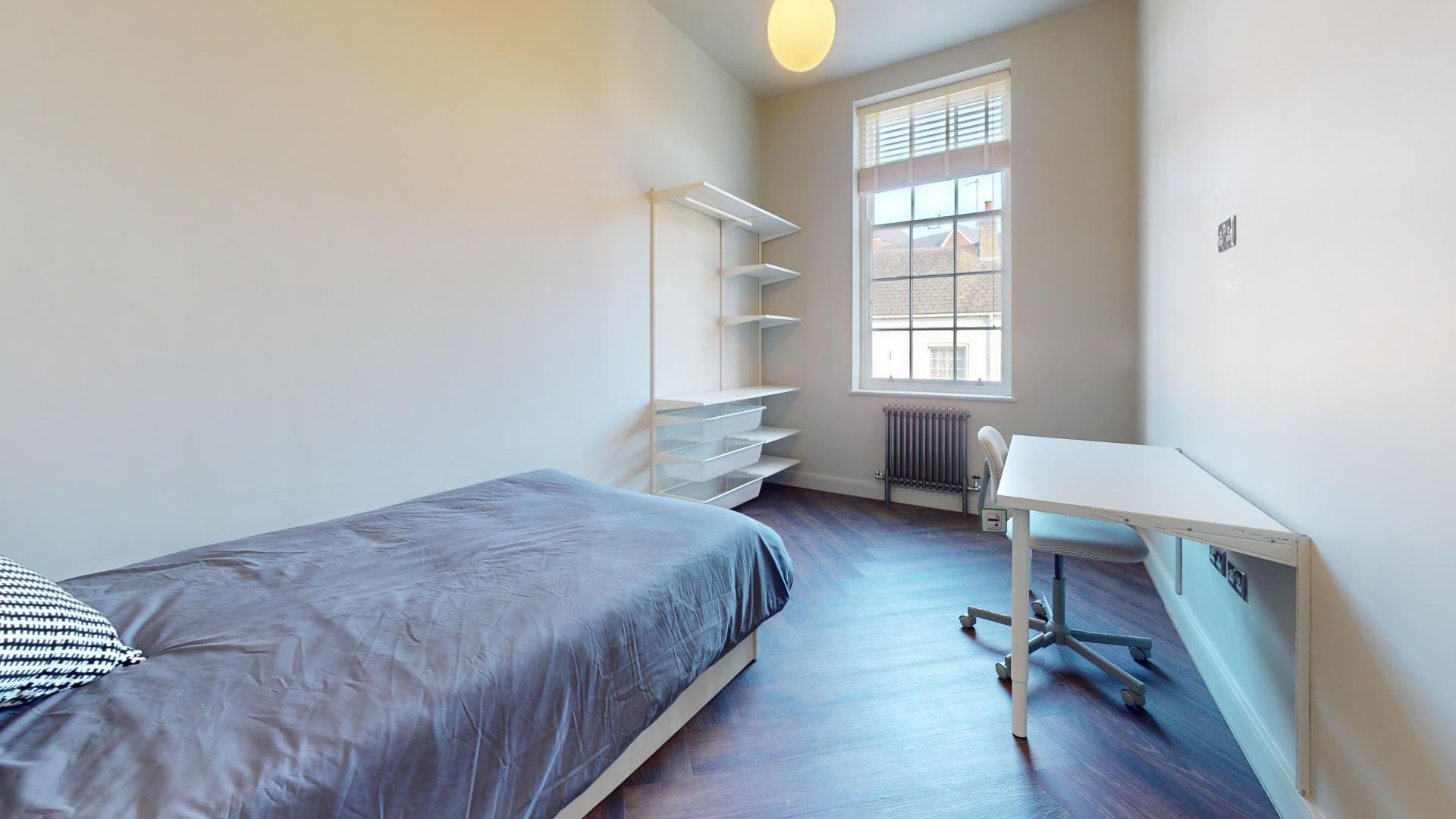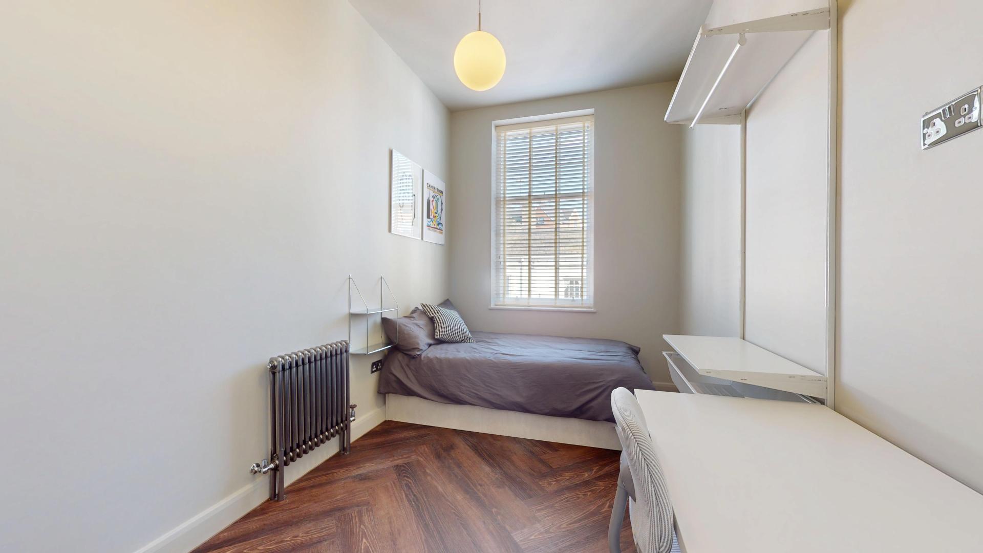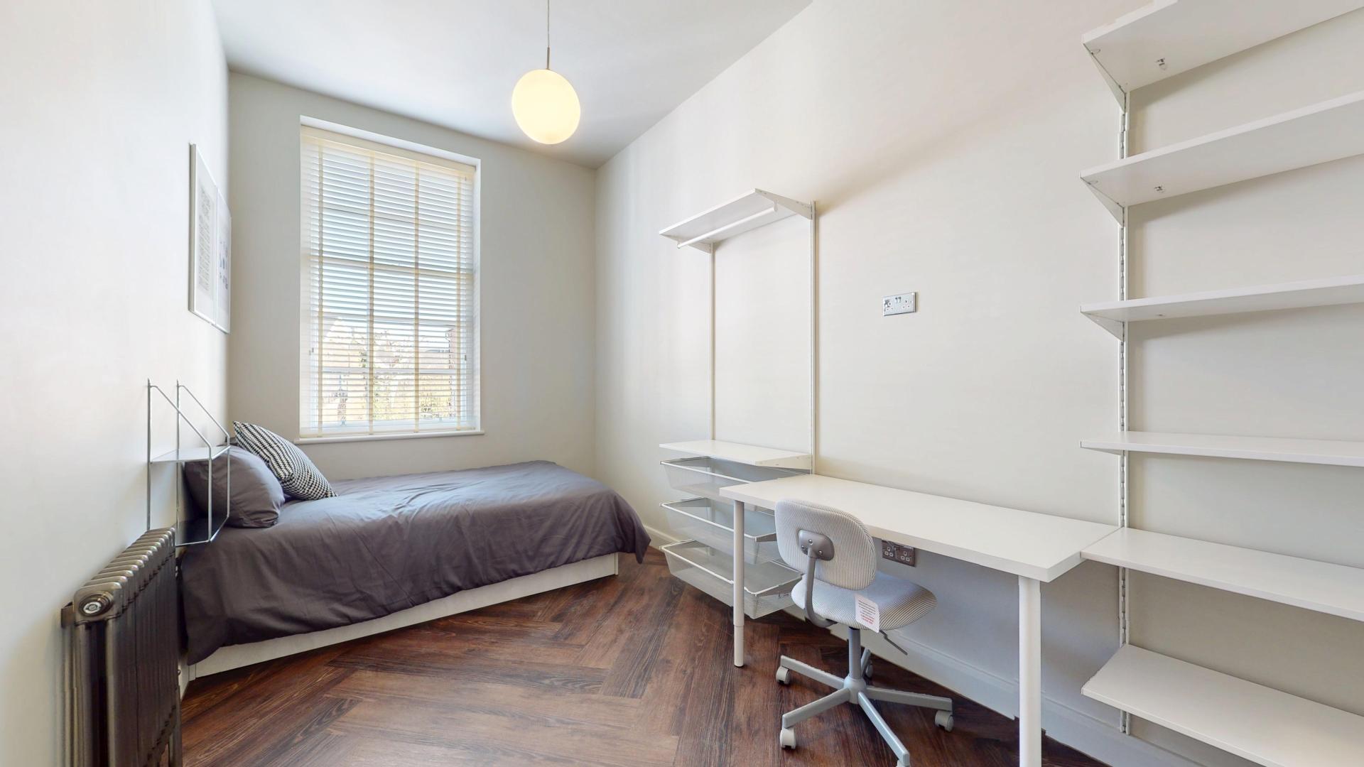 - Bedroom furniture: bed, desk, desk chair, wardrobe, and drawers