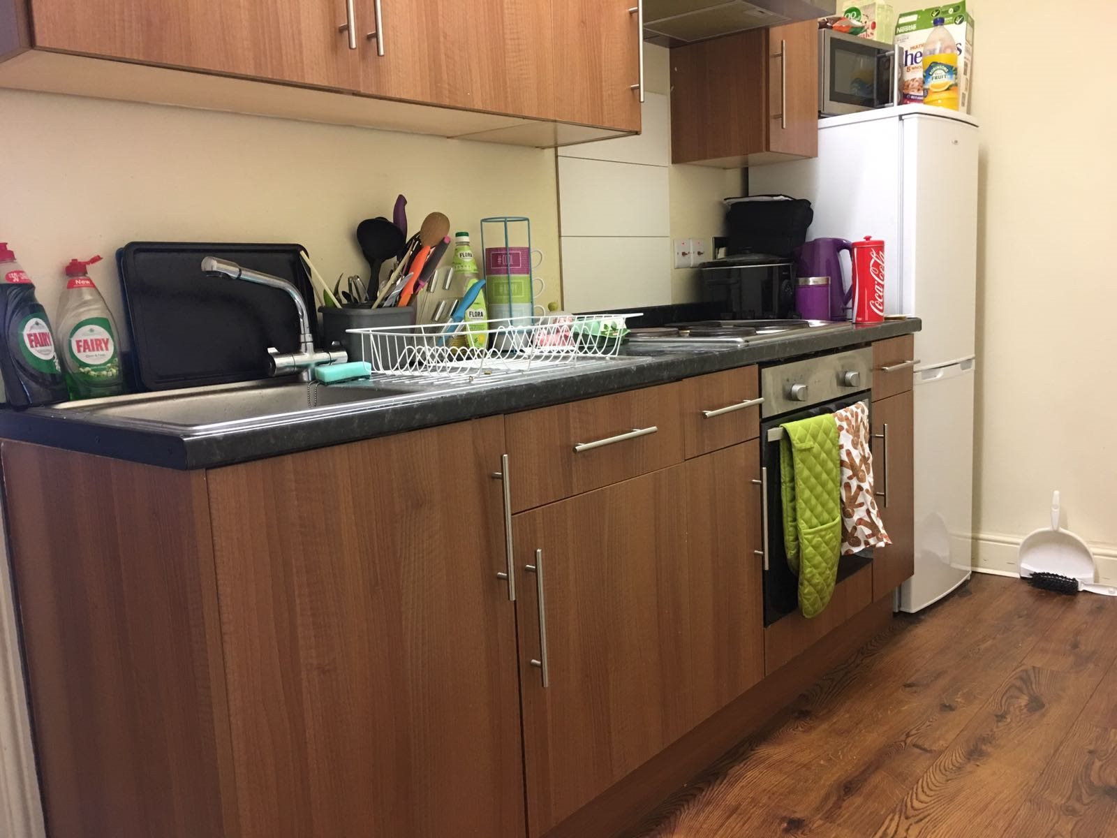 Communal Grandeur: The spacious shared kitchen and living area are designed for communal meals, study sessions, or simply relaxing, making it the social heart of the flat.