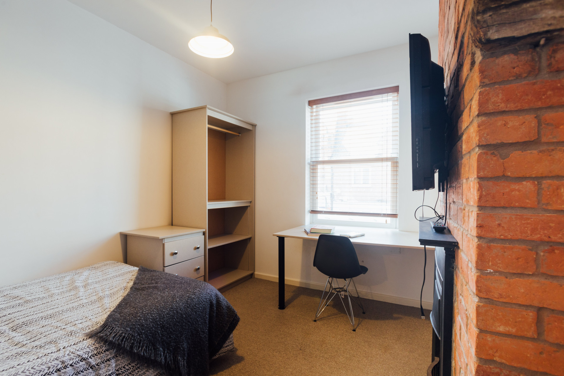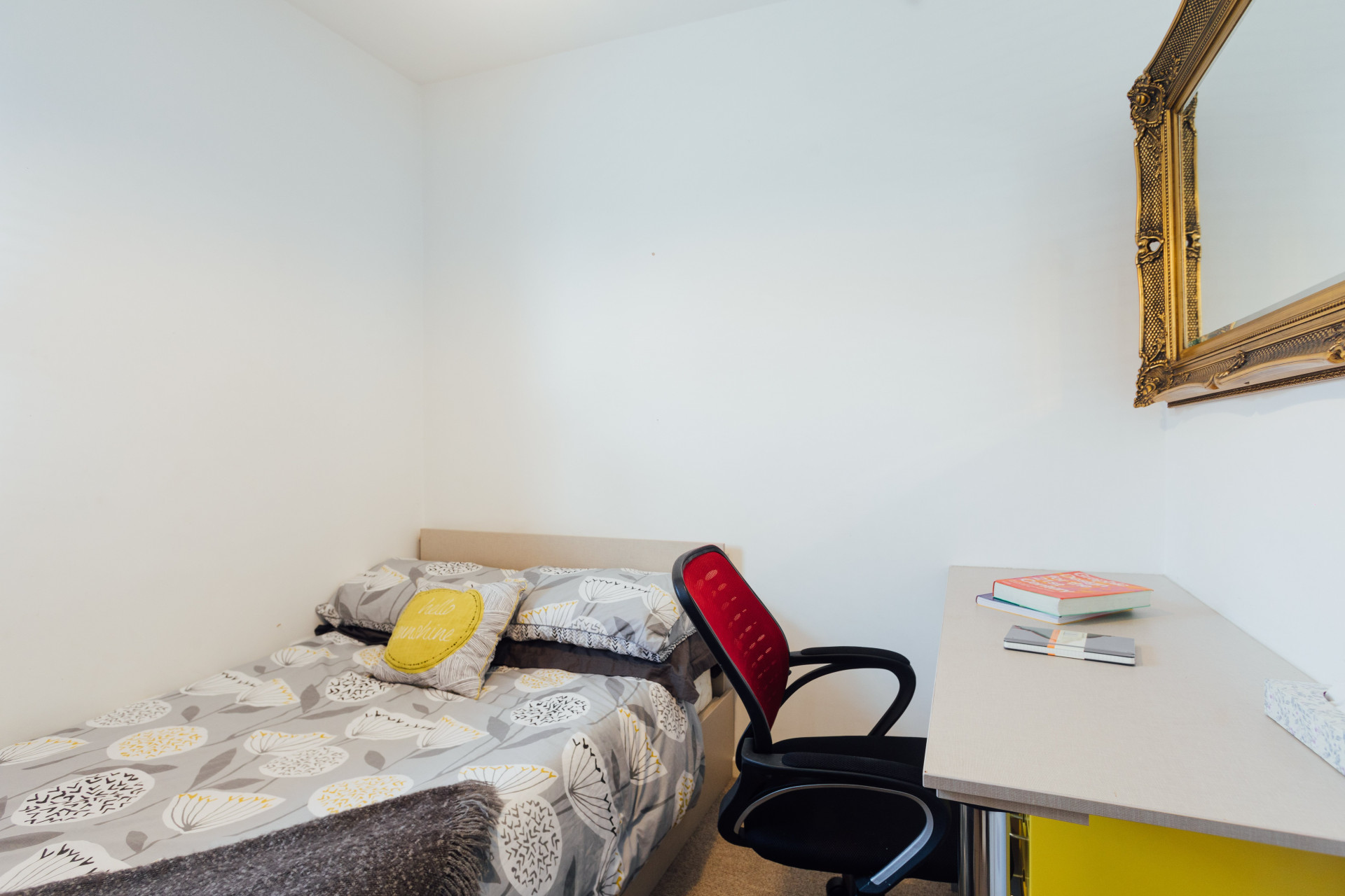 - Bedroom furniture: bed, desk, desk chair, wardrobe, and drawers