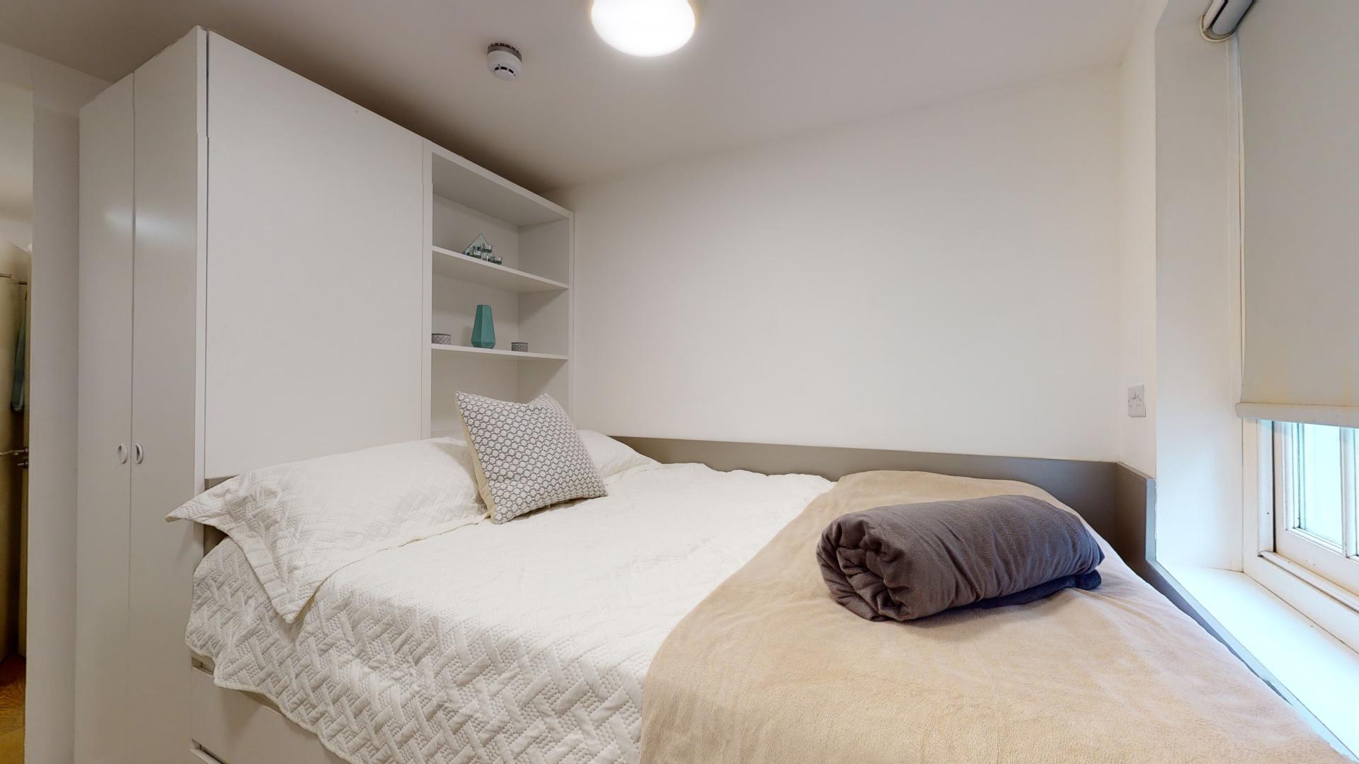 Each of the six spacious double bedrooms comes with its own en-suite bathroom and built-in storage. The apartment is fully equipped with modern fittings throughout, including a TV in the communal living room, long study desks, bookshelves, a dishwasher, and generous storage space. Additional amenities include CCTV, a secure fob entry system, and bike storage.