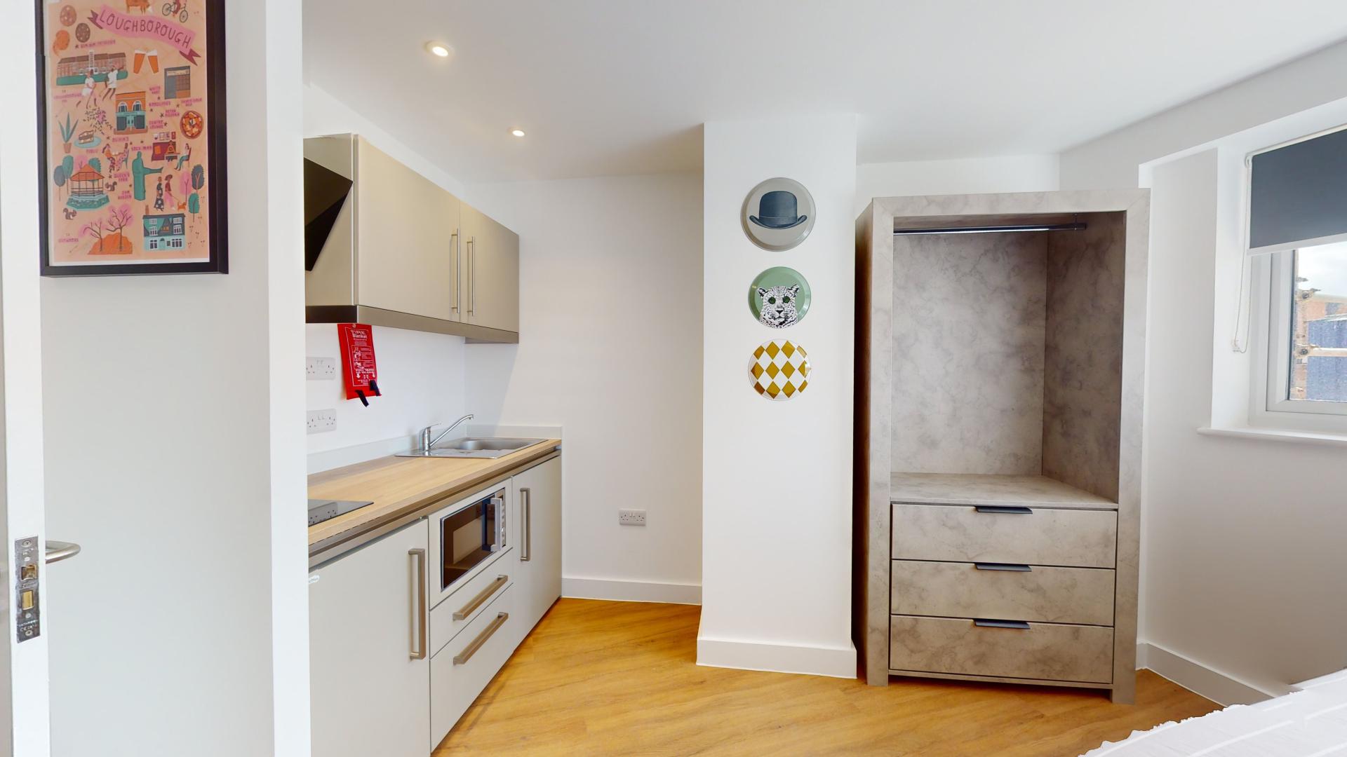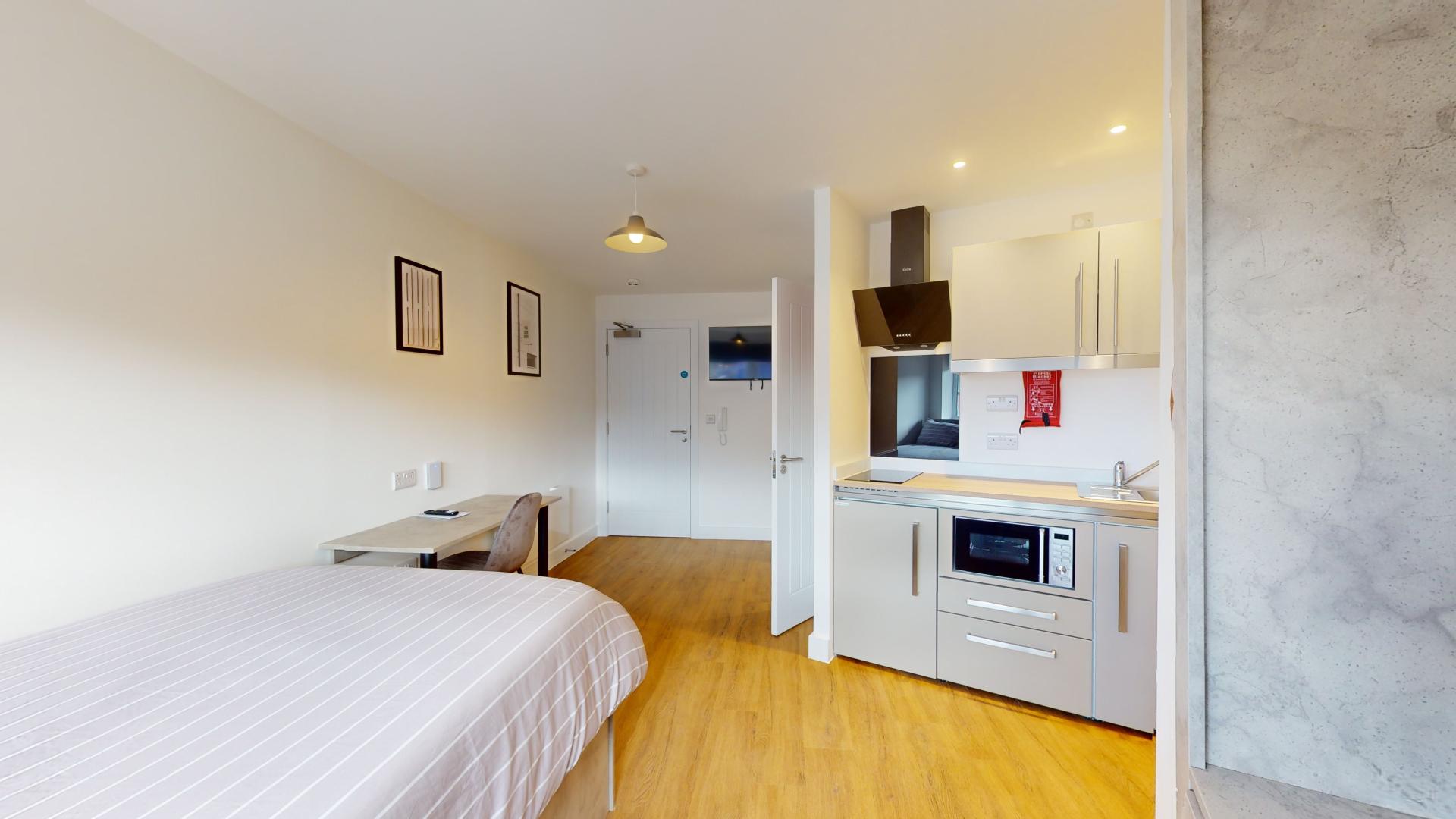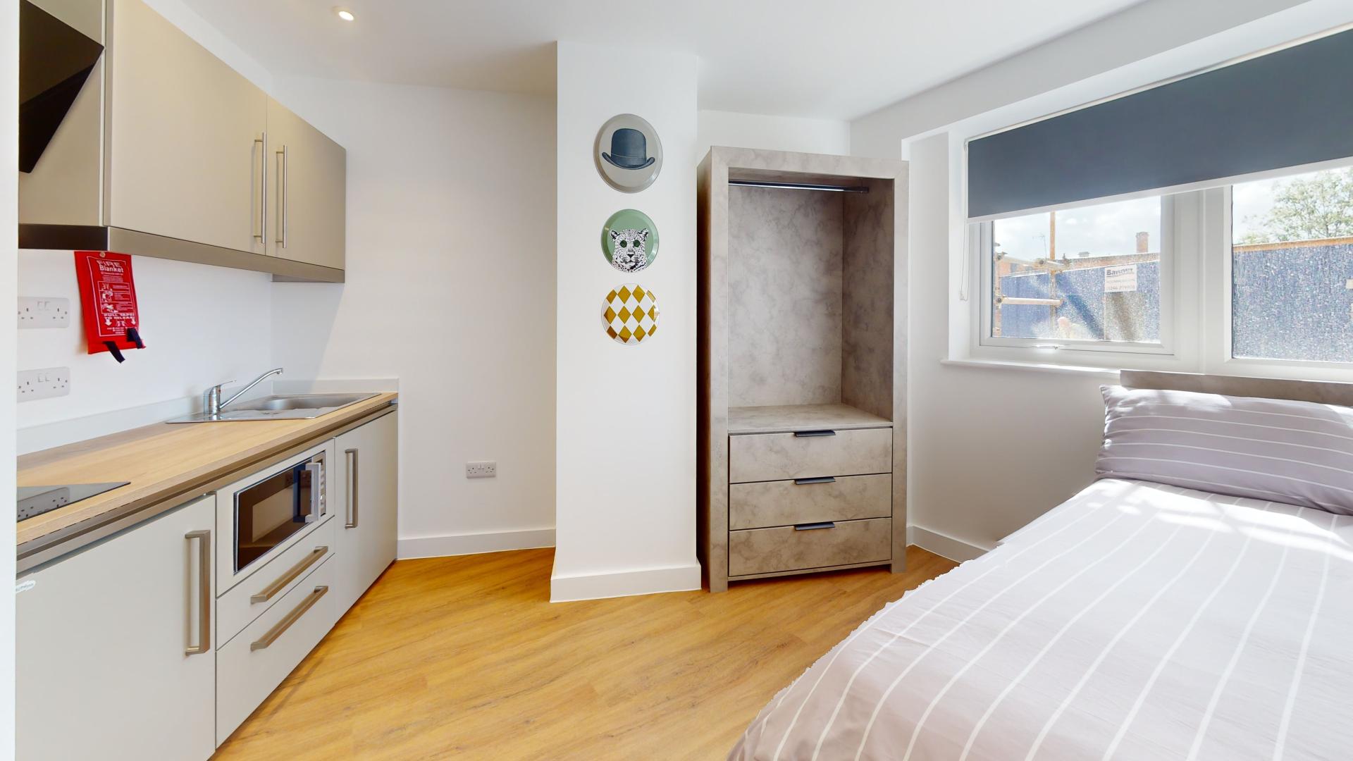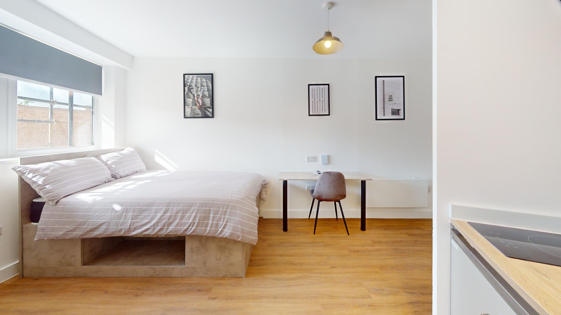 The studio offers a fully self-contained living space complete with an ensuite bathroom and a fully equipped kitchen, ensuring students have everything they need at their fingertips. Its prime location in the town centre places Tesco right next door, making grocery runs quick and hassle-free. Residents can also maintain an active lifestyle with the convenience of an onsite gym, while secure bike storage facilities provide peace of mind by protecting bicycles from potential theft or damage.
