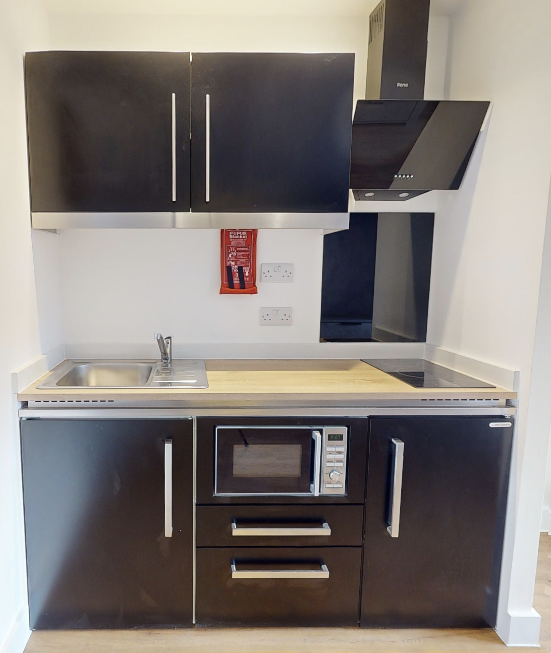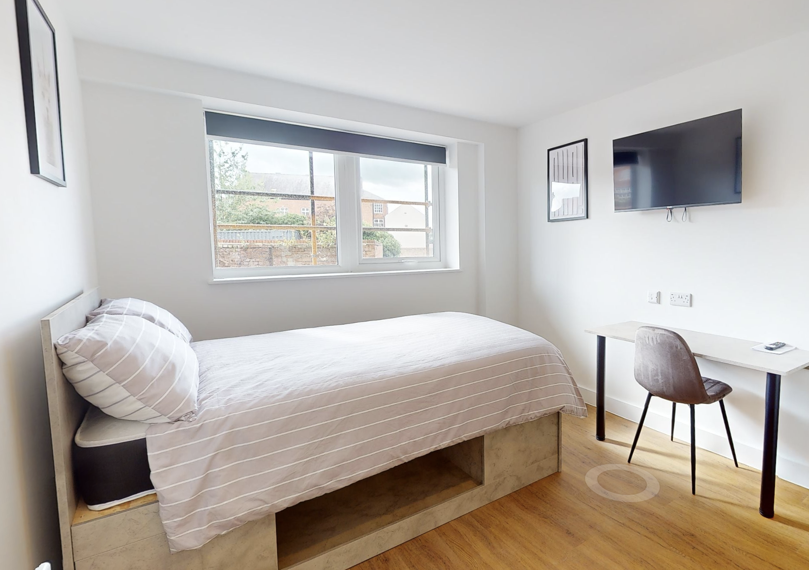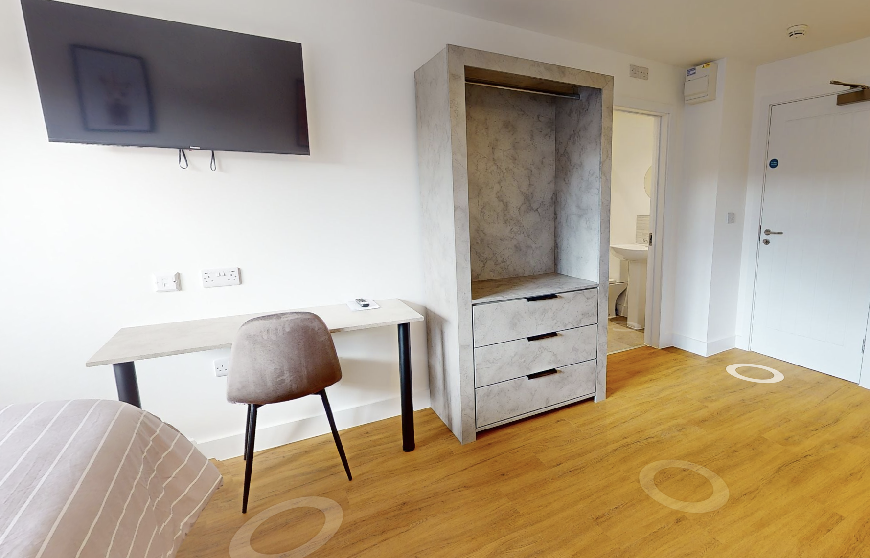 The studio offers a fully self-contained living space complete with an ensuite bathroom and a fully equipped kitchen, ensuring students have everything they need at their fingertips. Its prime location in the town centre places Tesco right next door, making grocery runs quick and hassle-free. Residents can also maintain an active lifestyle with the convenience of an onsite gym, while secure bike storage facilities provide peace of mind by protecting bicycles from potential theft or damage.