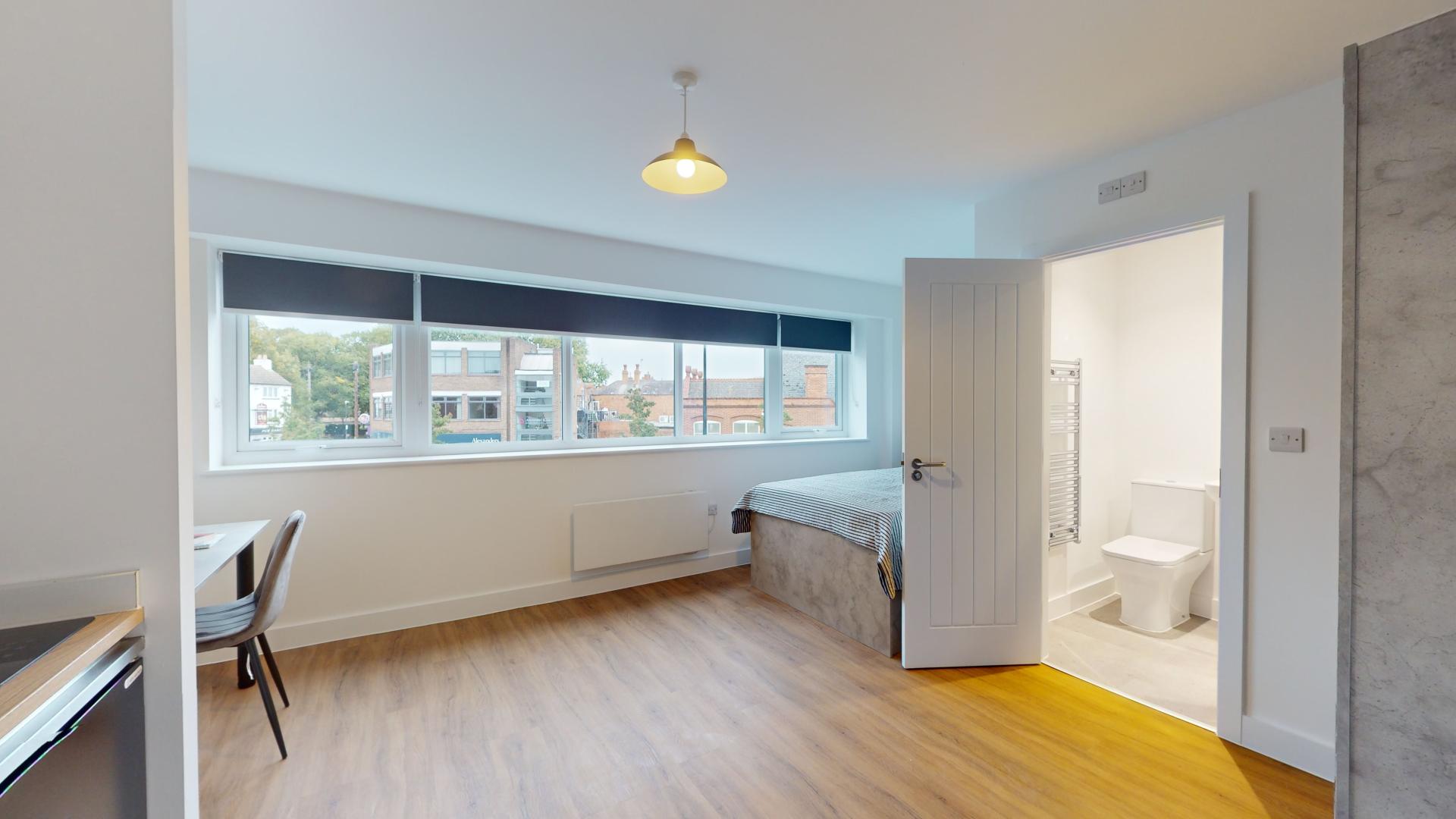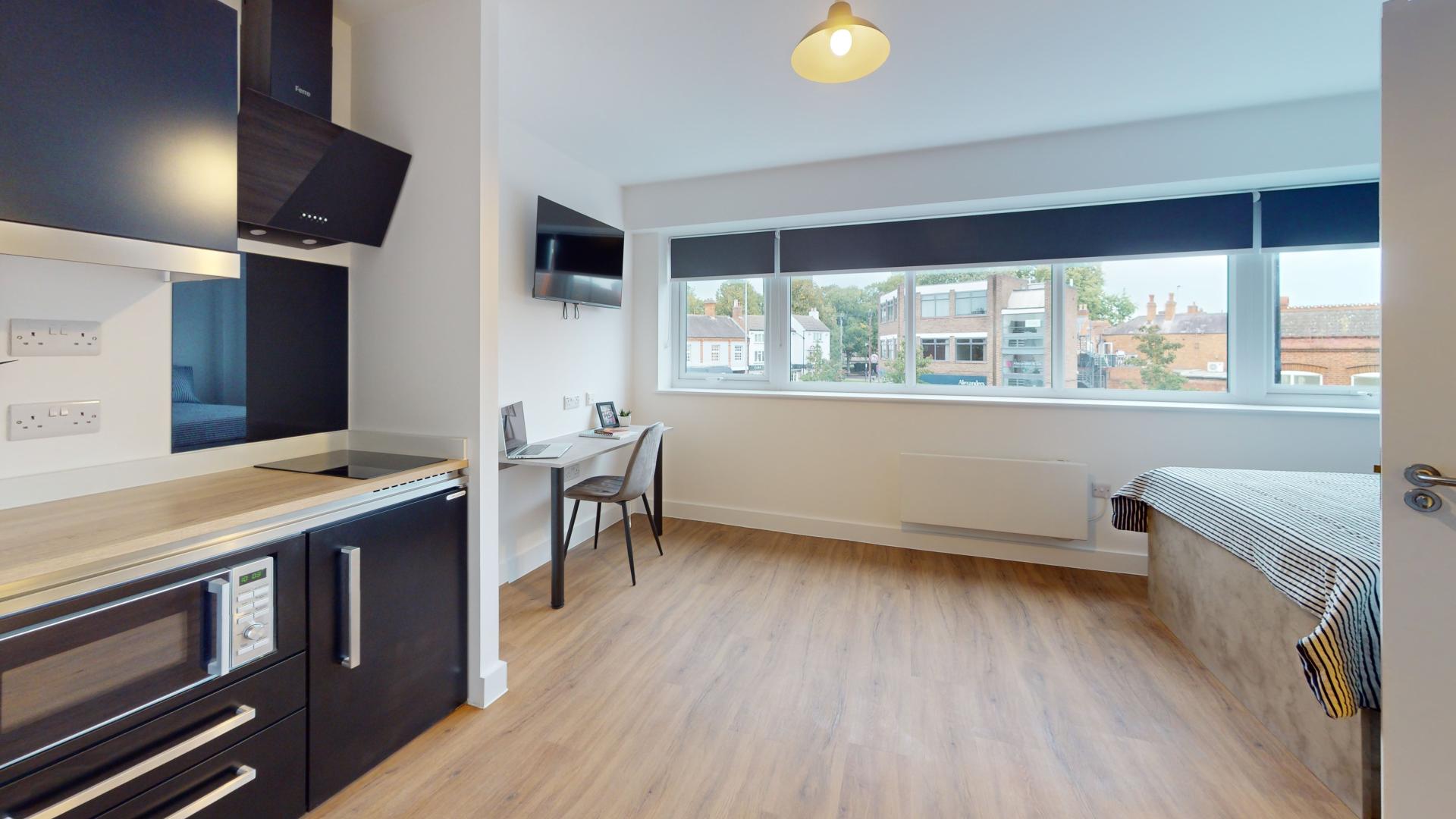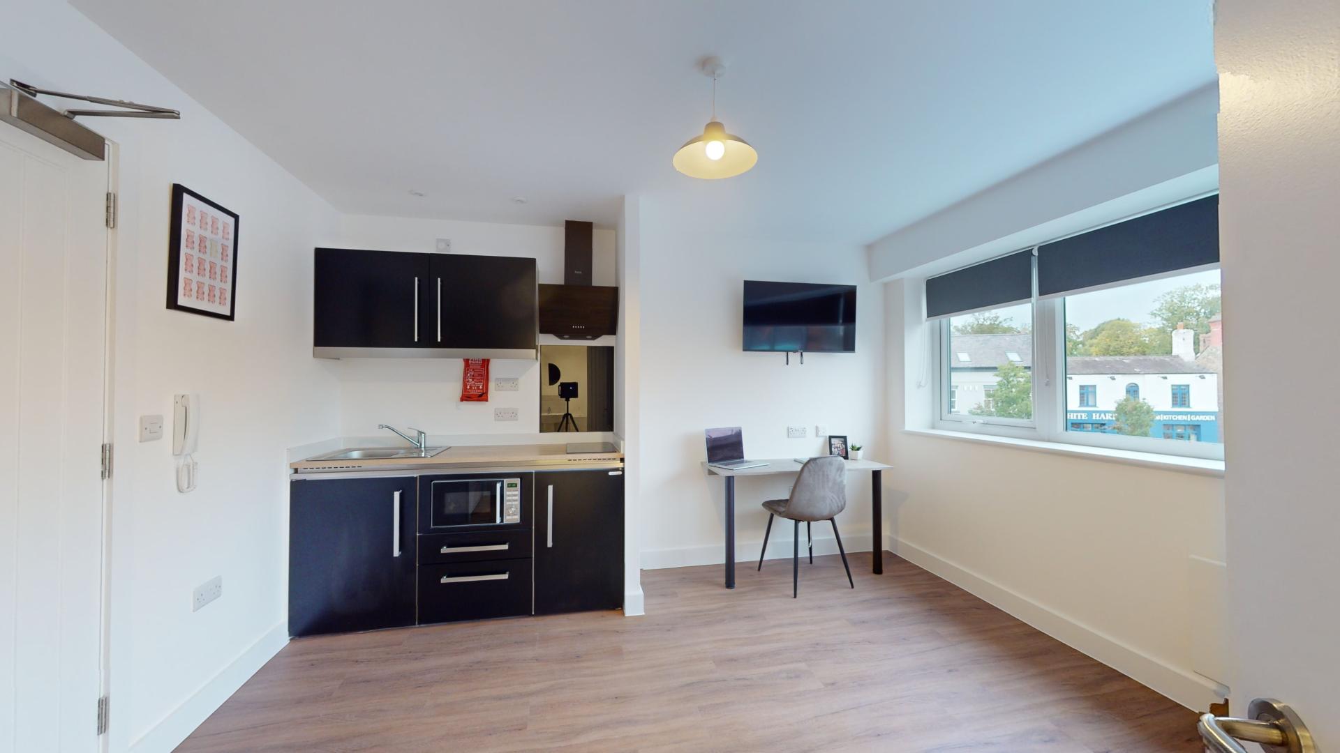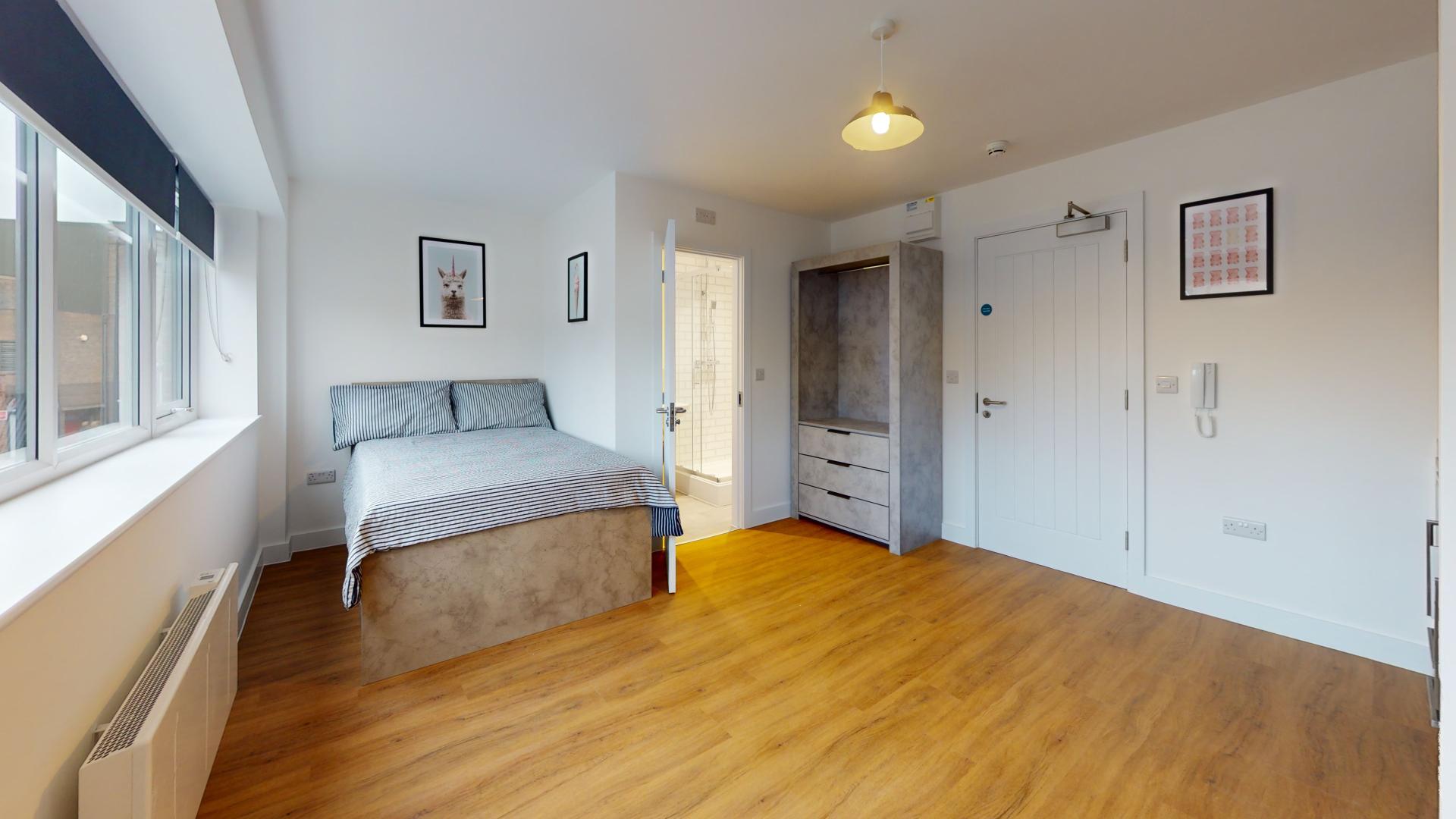 The studio offers a fully self-contained living space complete with an ensuite bathroom and a fully equipped kitchen, ensuring students have everything they need at their fingertips. Its prime location in the town centre places Tesco right next door, making grocery runs quick and hassle-free. Residents can also maintain an active lifestyle with the convenience of an onsite gym, while secure bike storage facilities provide peace of mind by protecting bicycles from potential theft or damage.