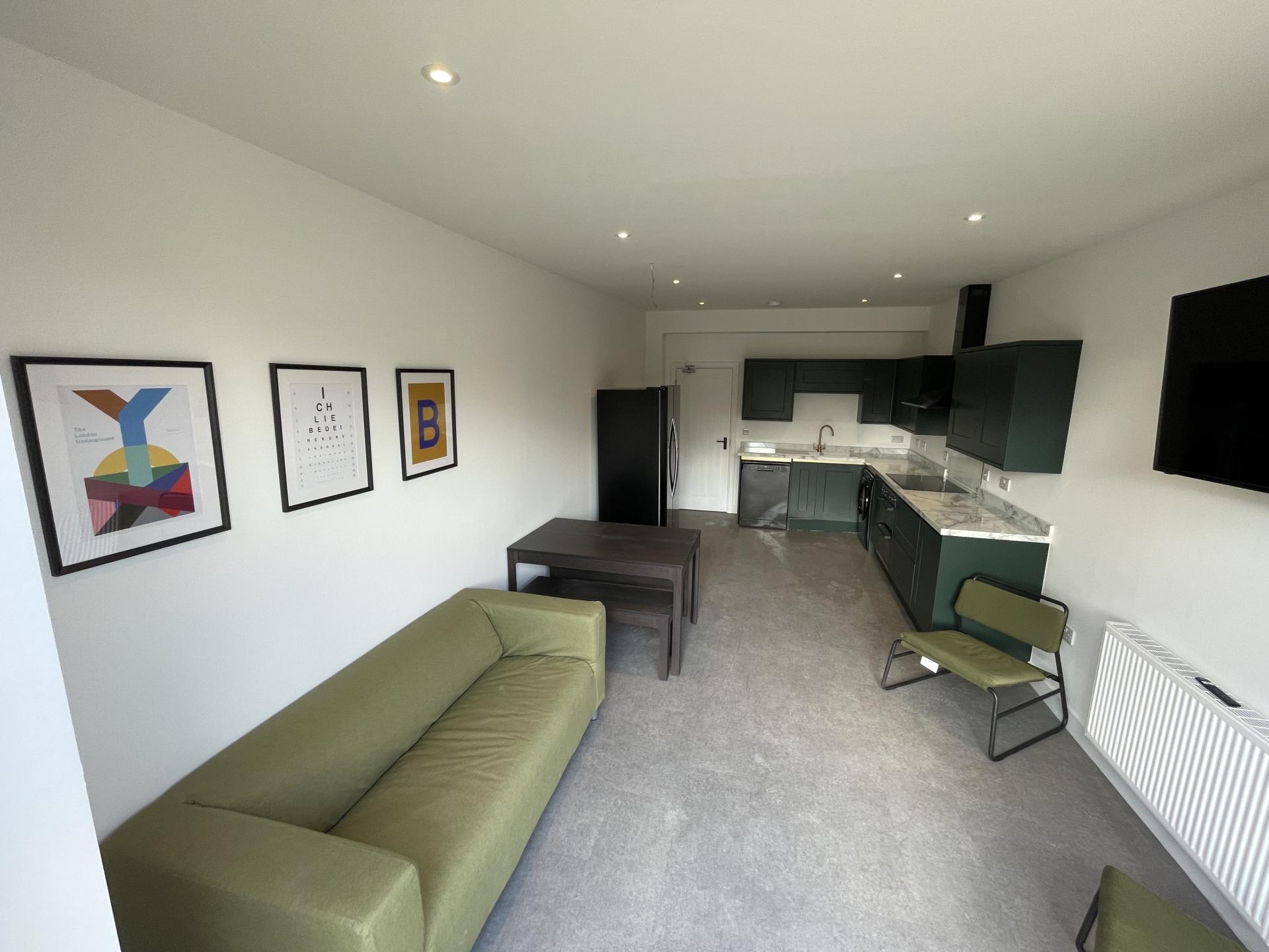 Modern Living Space: The heart of the flat is its large, open-plan kitchen and living room, designed with sleek, modern fittings. It’s the ideal spot for cooking, socializing, or unwinding after a busy day at university.