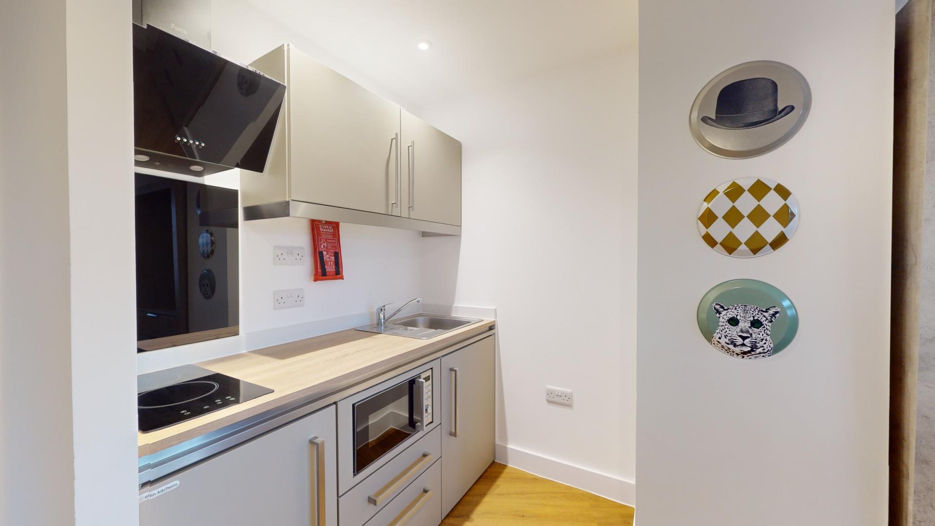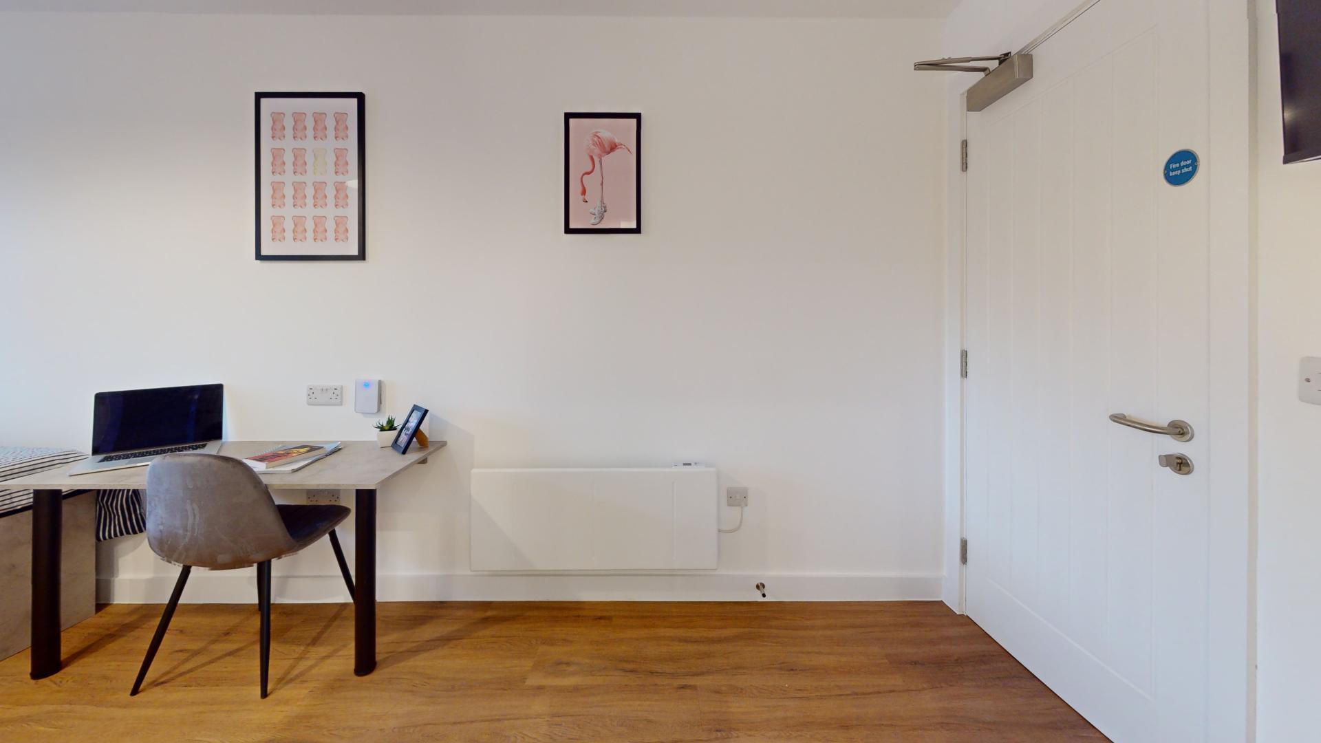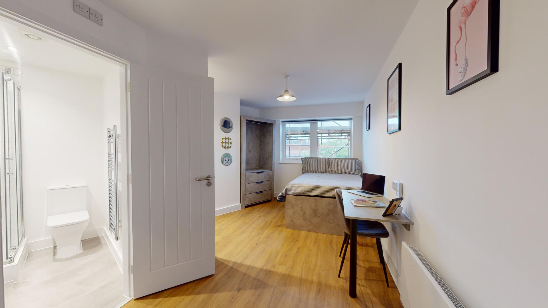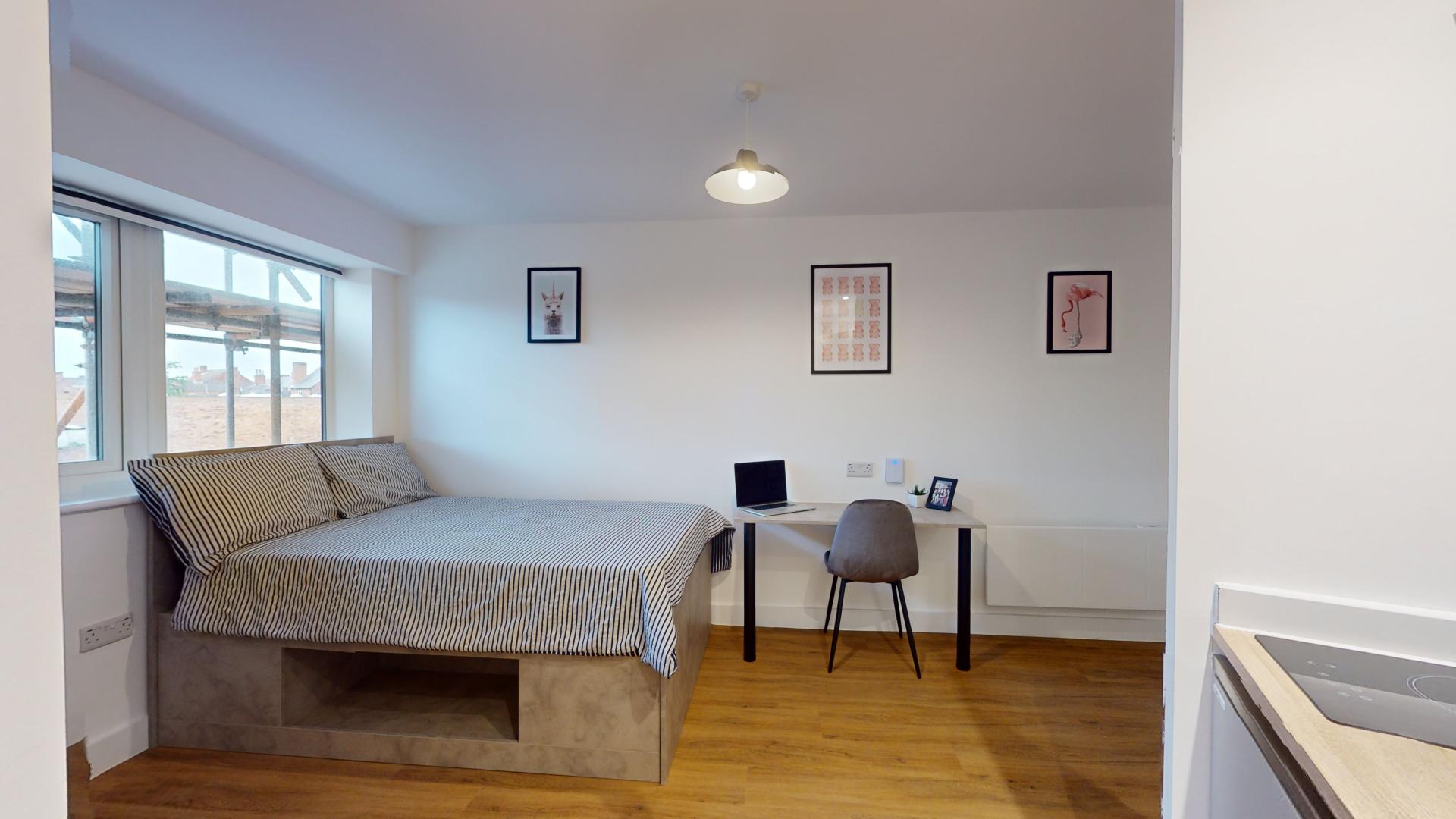 The studio offers a fully self-contained living space complete with an ensuite bathroom and a fully equipped kitchen, ensuring students have everything they need at their fingertips. Its prime location in the town centre places Tesco right next door, making grocery runs quick and hassle-free. Residents can also maintain an active lifestyle with the convenience of an onsite gym, while secure bike storage facilities provide peace of mind by protecting bicycles from potential theft or damage.
