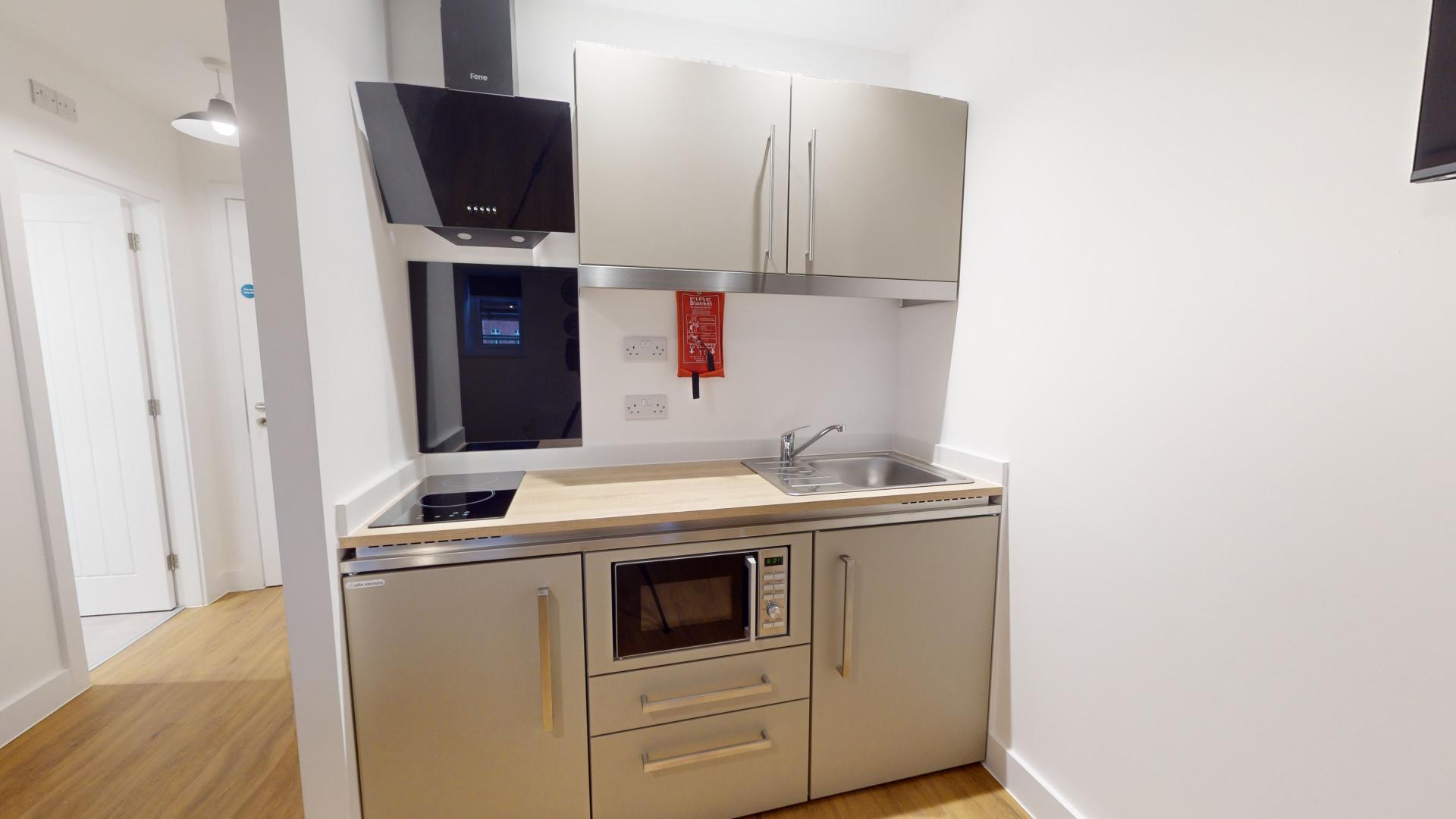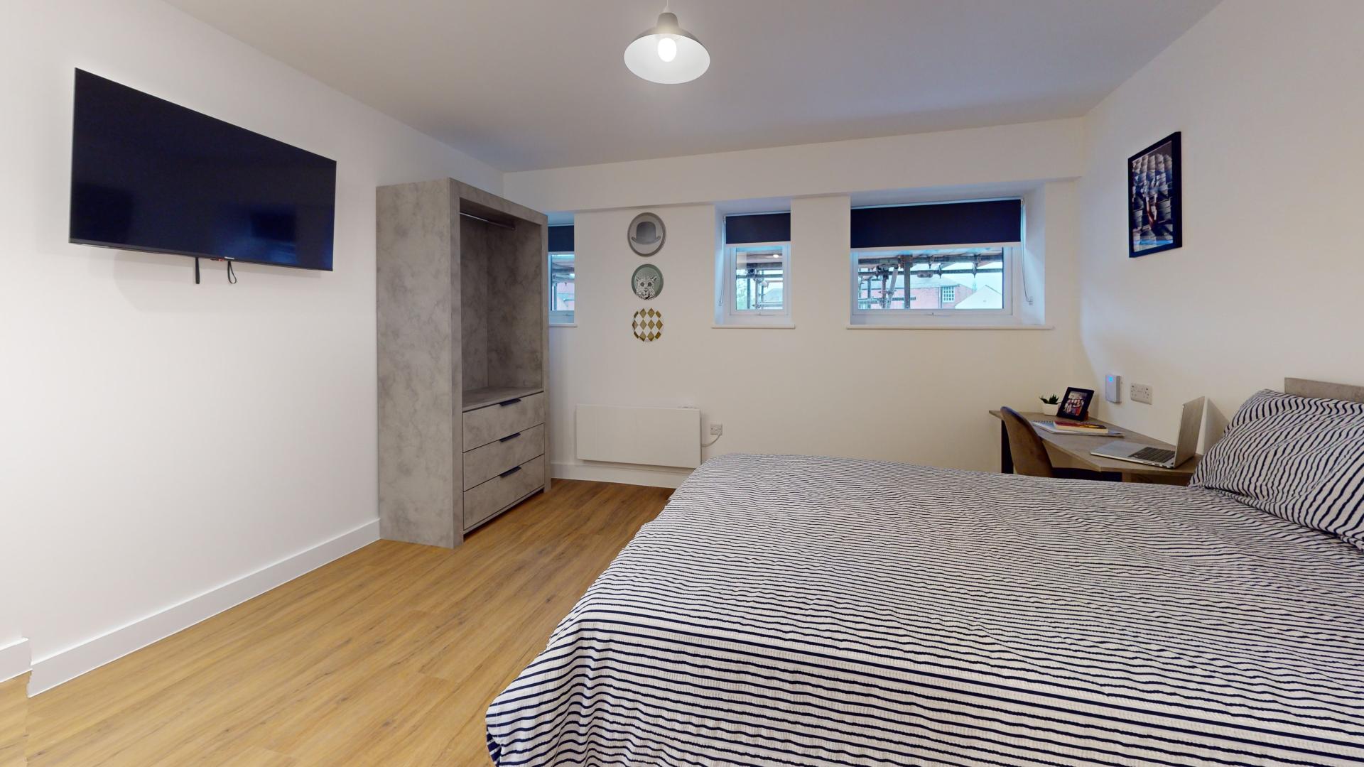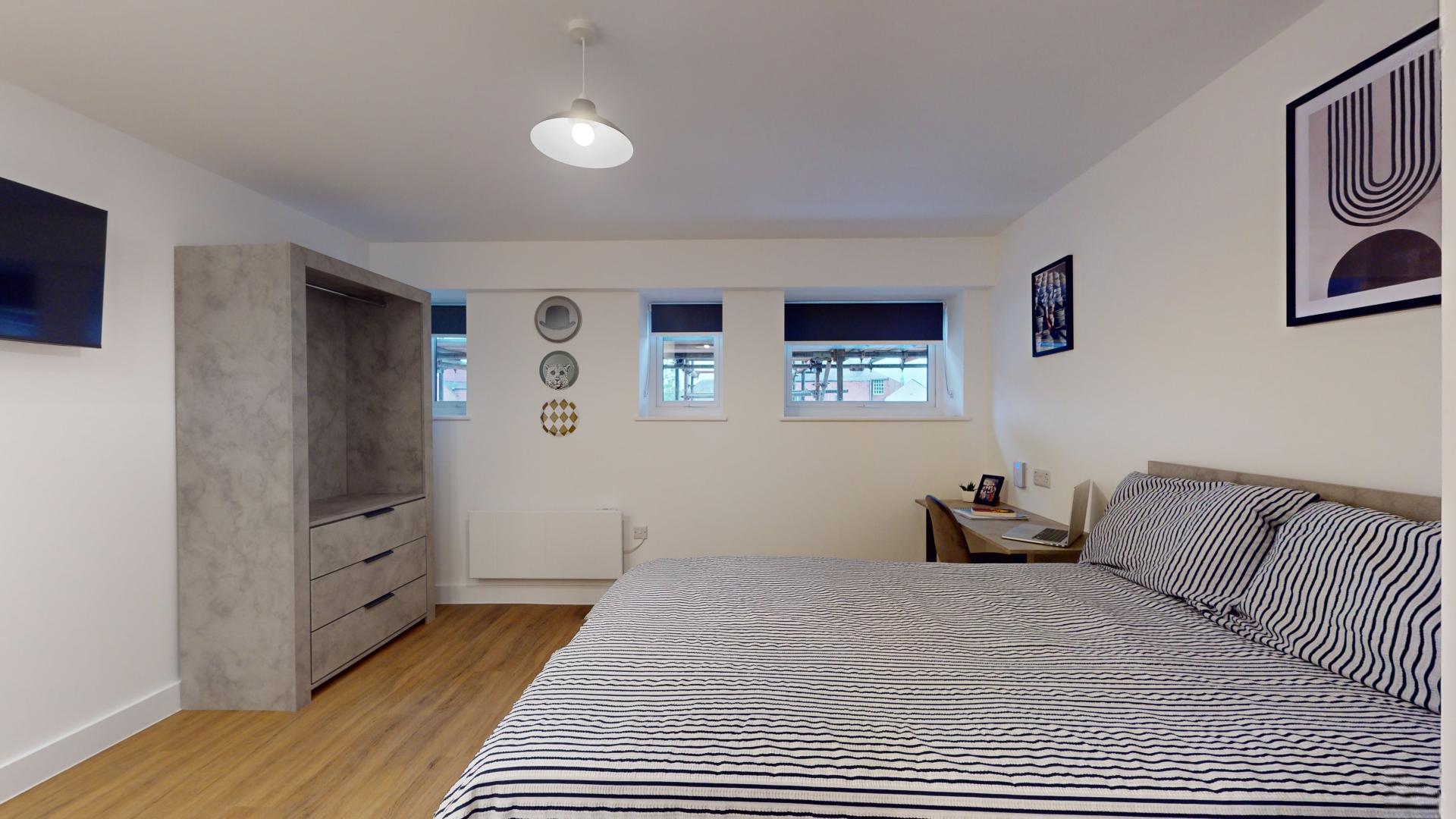 The studio offers a fully self-contained living space complete with an ensuite bathroom and a fully equipped kitchen, ensuring students have everything they need at their fingertips. Its prime location in the town centre places Tesco right next door, making grocery runs quick and hassle-free. Residents can also maintain an active lifestyle with the convenience of an onsite gym, while secure bike storage facilities provide peace of mind by protecting bicycles from potential theft or damage.