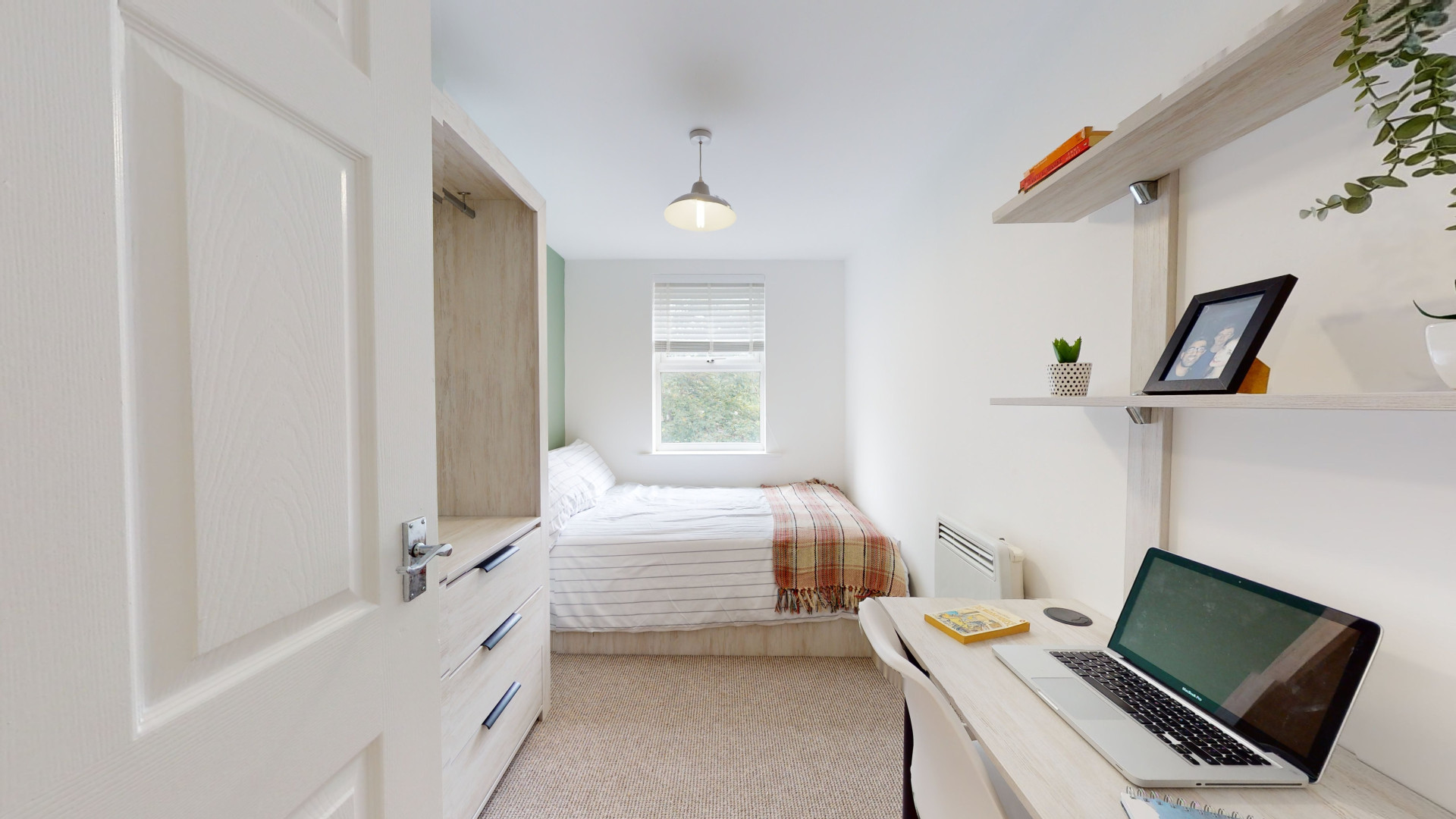 - Bedroom furniture: bed, desk, desk chair, wardrobe, and drawers